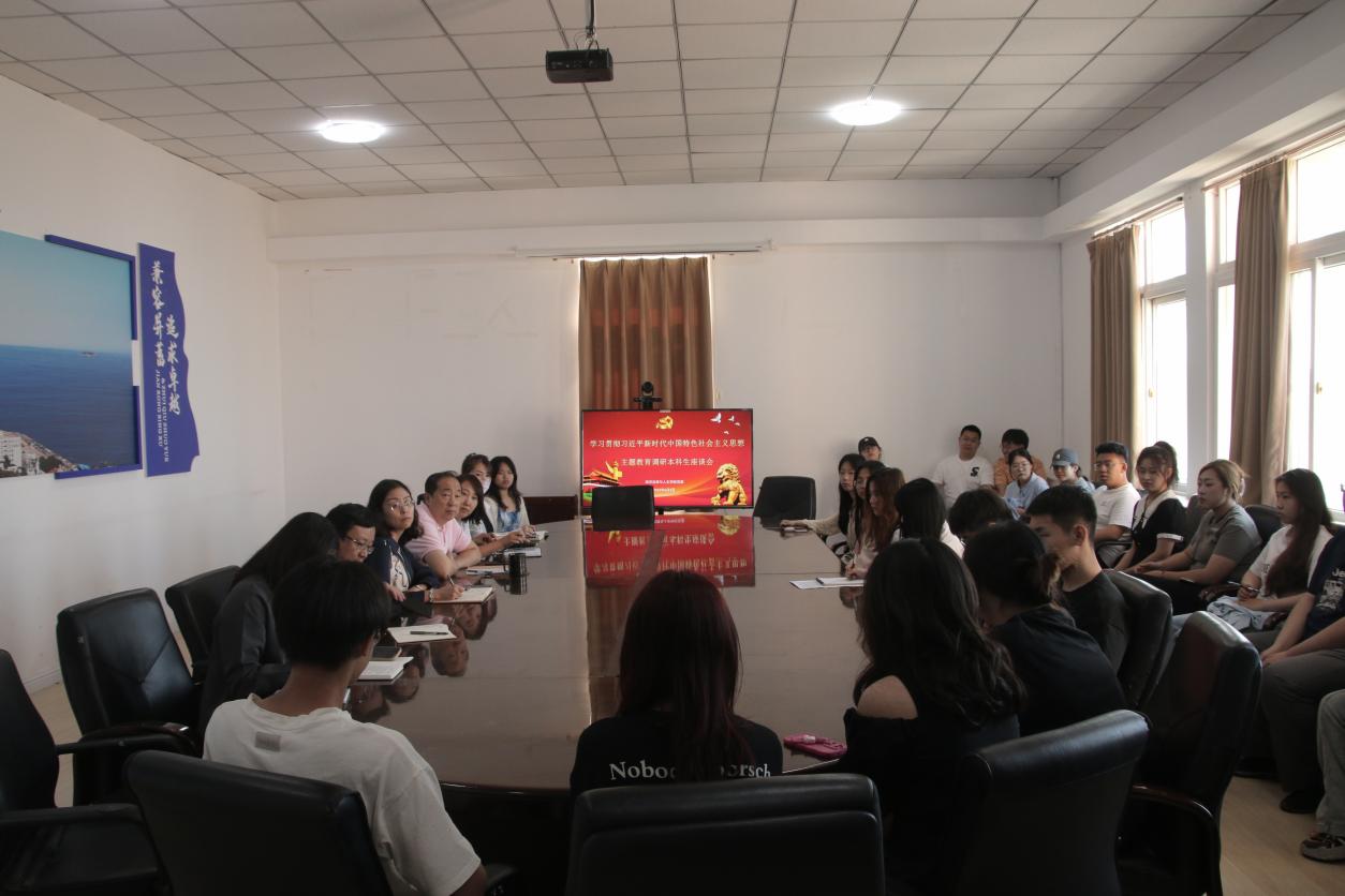 在渤海校区会议室举行学习贯彻习近平新时代中国特色社会主义思想主题教育调研本科生座谈会。院长裴兆斌、党委书记高雪梅、副院长王黎黎、党委副书记滕鹏、辅导员和本科生代表40余人参加会议。
