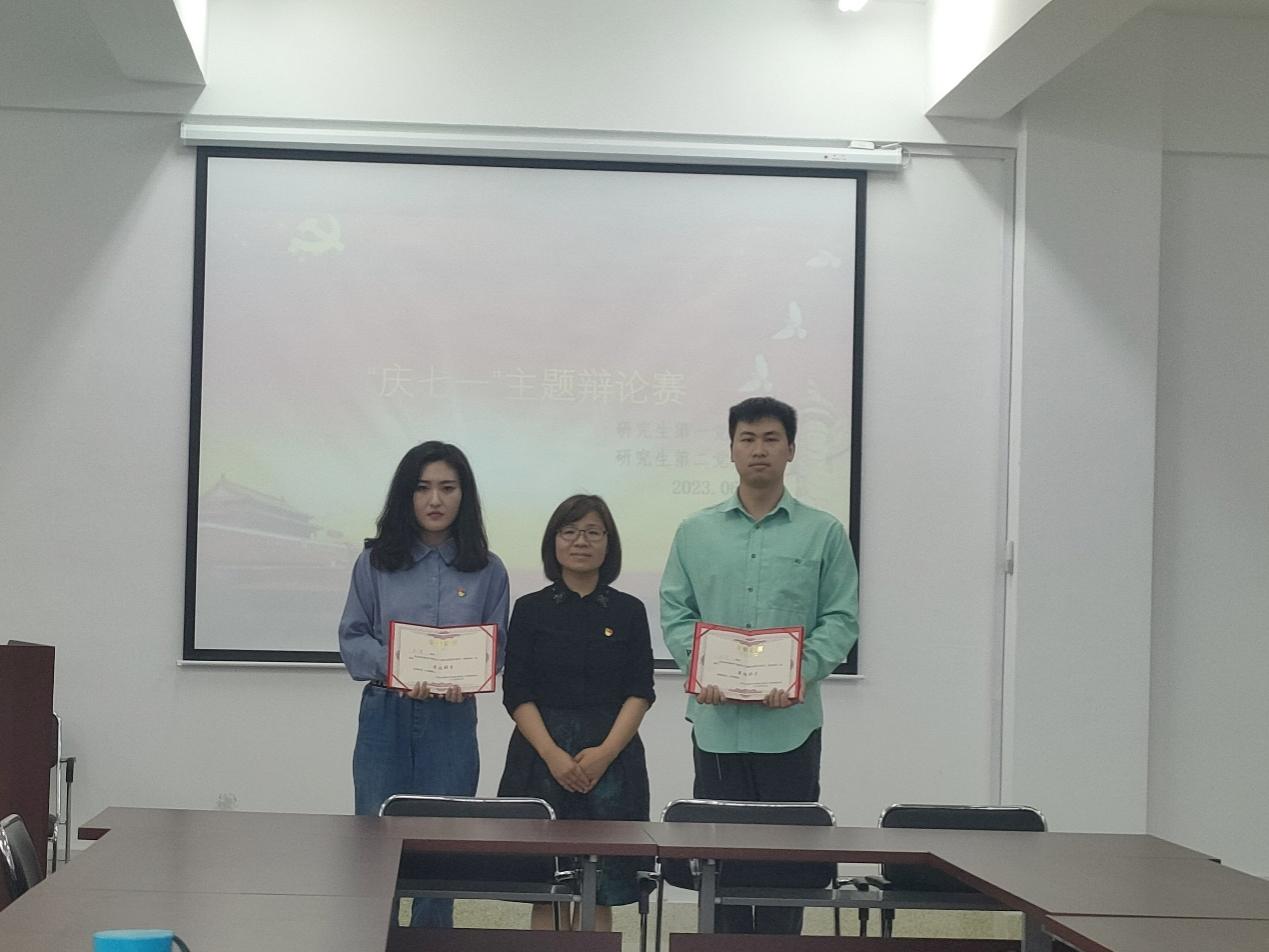 最终,正方四辩马小倩同学和反方二辩丛文同学分别获得本次比赛的“最佳辩手”,正方代表队研究生第二党支部获得“冠军团队”。