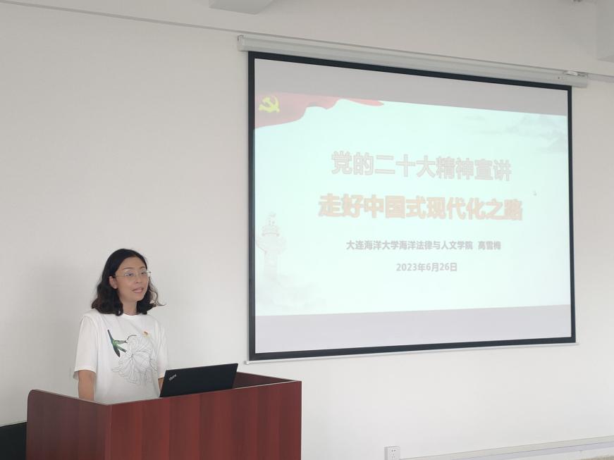 6月26日,51吃瓜网 党委书记高雪梅以“走好中国式现代化之路”为题讲授主题党课,宣讲党的二十大精神。学院研究生党员和入党积极分子代表参加。
