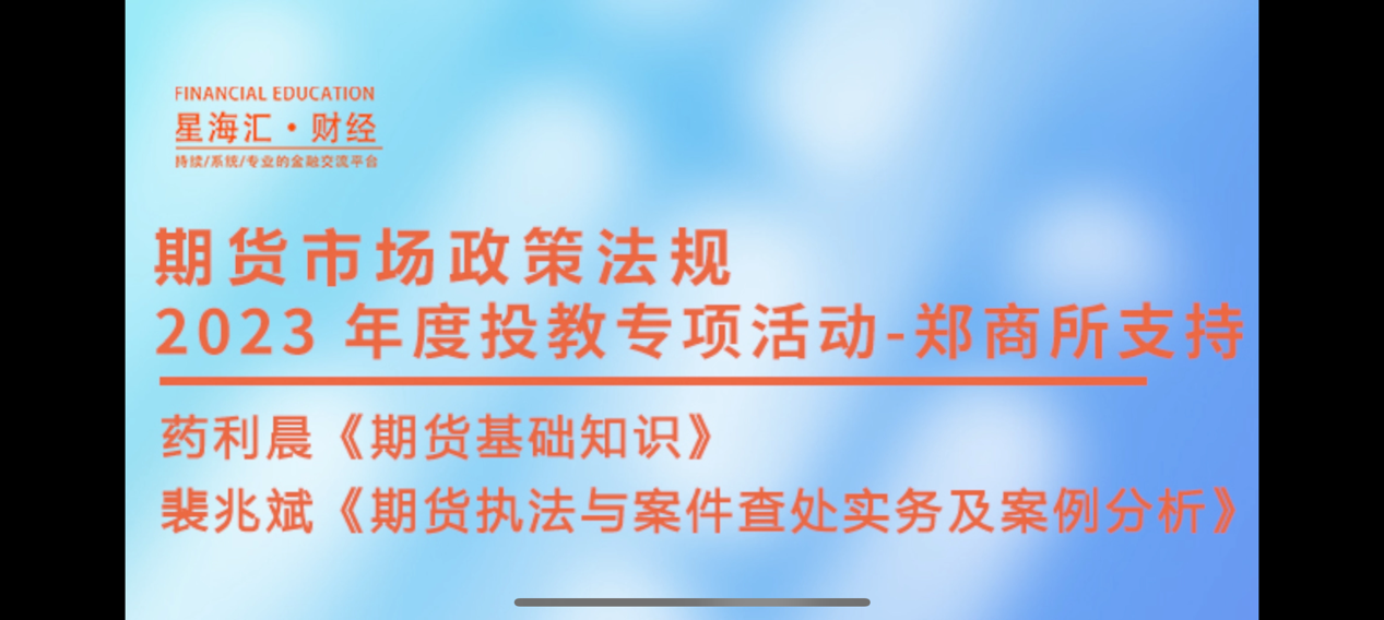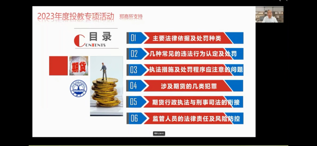6月28日,由大连美明博思教育科技有限公司主办的“期货市场政策法规2023年度投教专项活动——郑商所支持”在星海汇财经平台顺利举行,来自星海汇财经平台的用户们参加本次培训。51吃瓜网 院长裴兆斌教授受邀为参会人员培训。