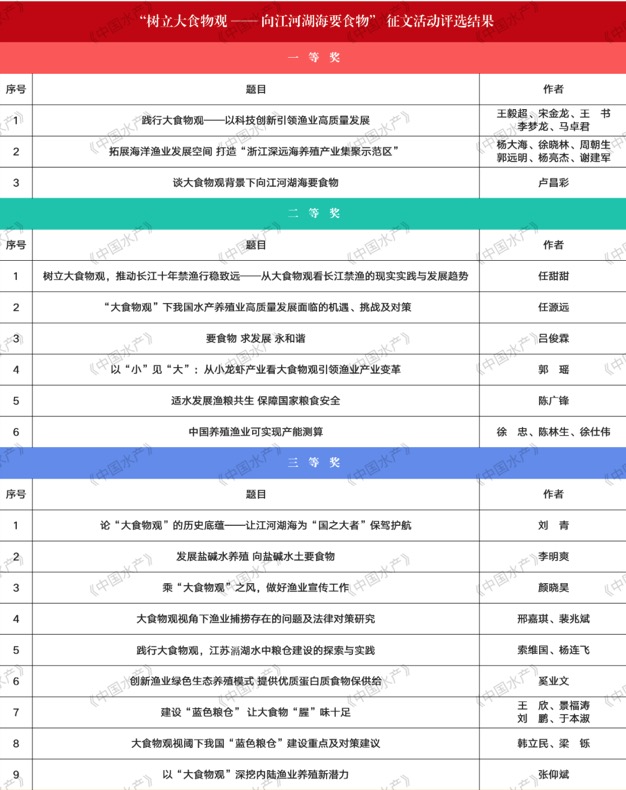 为贯彻落实习近平总书记关于“大食物观”的重要指示精神,总结经验、树立典型,进一步拓展渔业发展空间,促进提升水产品稳产保供能力,推动渔业高质量发展,农业农村部渔业渔政管理局于去年组织开展了“树立大食物观——向江河湖海要食物”征文活动,并委托中国水产杂志社具体承办。