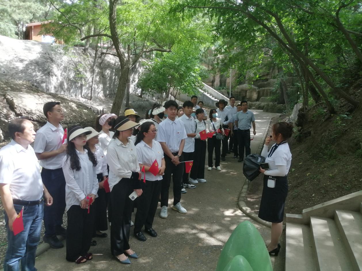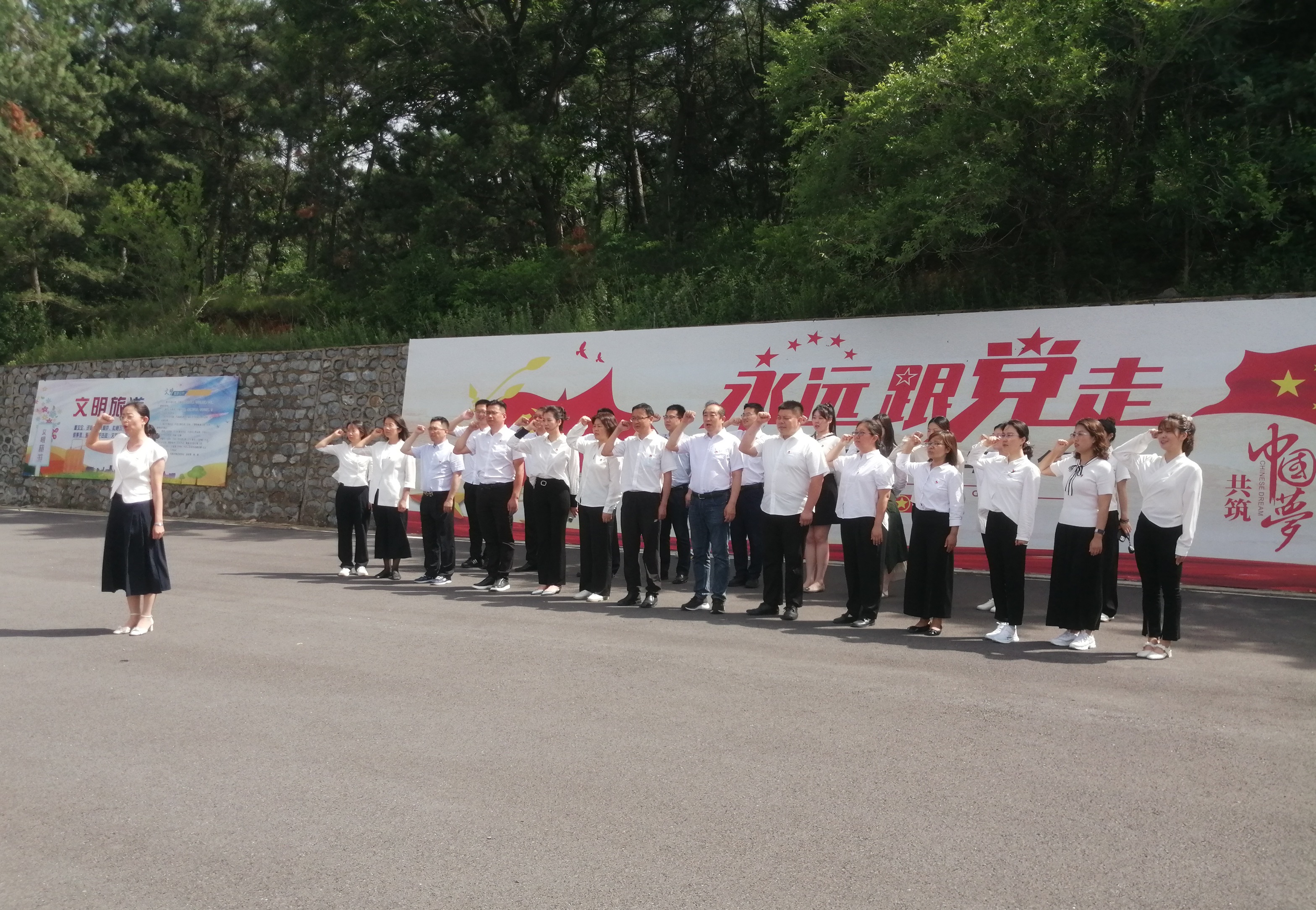 首先,由高雪梅带领全体党员重温入党誓词。党旗鲜红,誓言铿锵,响彻东鸡冠山爱国主义教育基地。