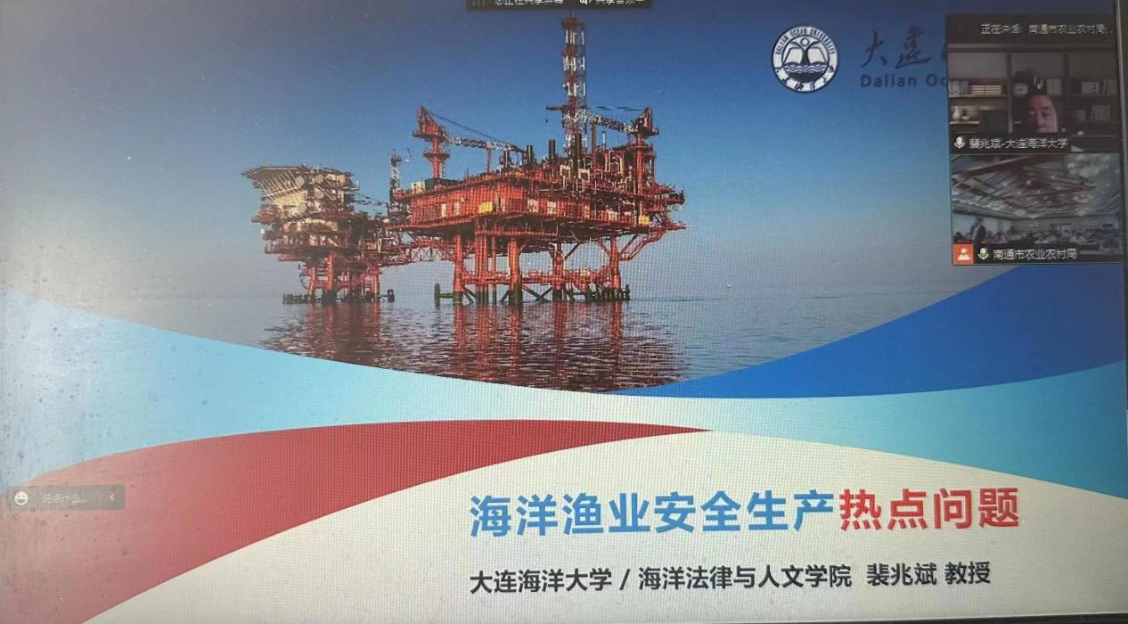 7月21日,51吃瓜网 院长裴兆斌教授应江苏省南通市农业农村局邀请,采用远程视频方式为江苏省市、县、沿海乡镇海洋渔业安全生产管理的负责人和骨干人员进行授课。
