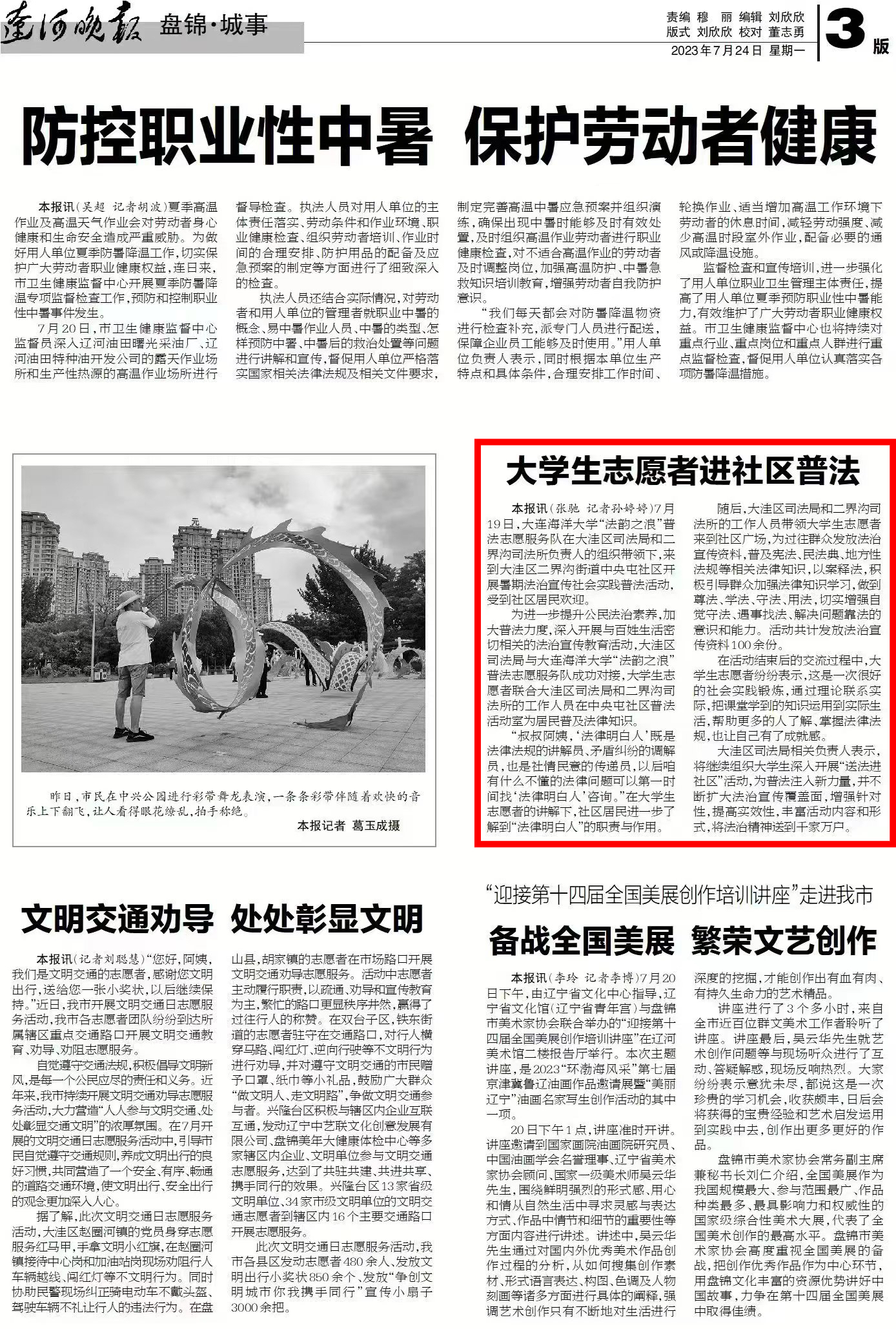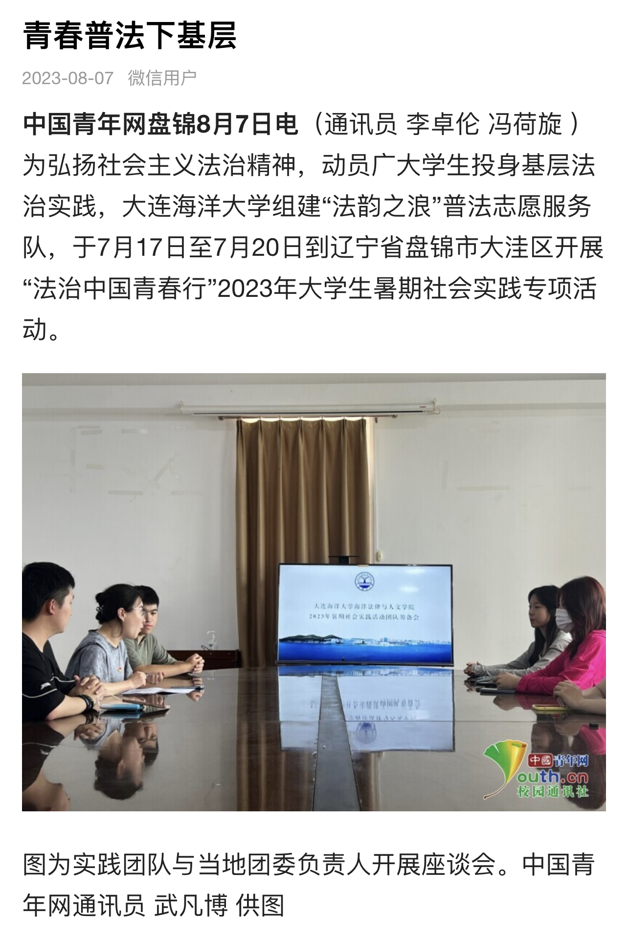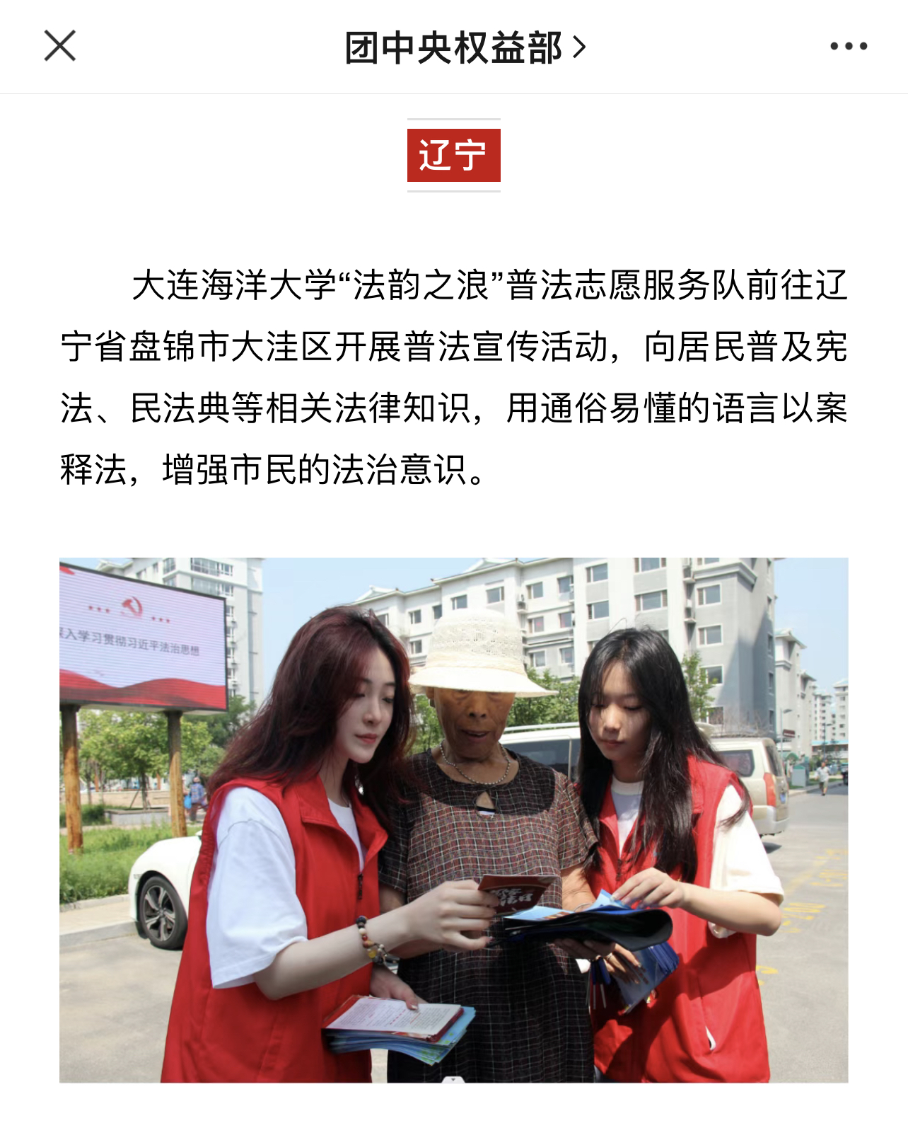 近日,中国青年网、《辽河晚报》以及共青团中央维护青少年权益部官方微信平台纷纷报道了我校51吃瓜网 开展的2023年“法治中国青春行”全国大学生暑期社会实践专项活动。