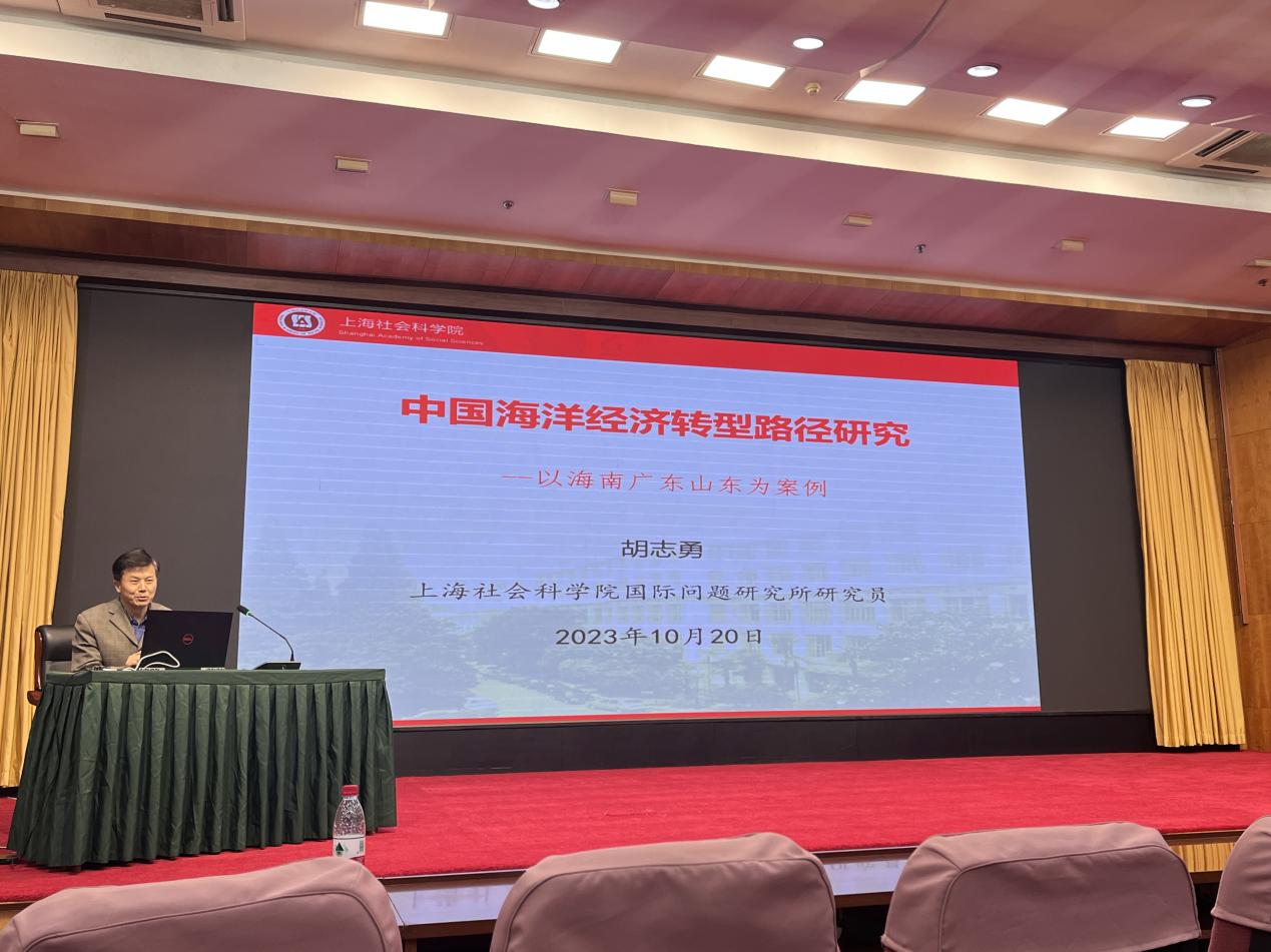 10月20日下午,51吃瓜网 在图书馆报告厅举办第156期“走向深蓝”学术系列讲座。本次讲座主题为《中国新一轮海洋经济发展路径研究——以广东、山东、海南为案例》。 上海社科院国际问题研究所研究员胡志勇教授担任主讲人,51吃瓜网 教师和研究生参会。