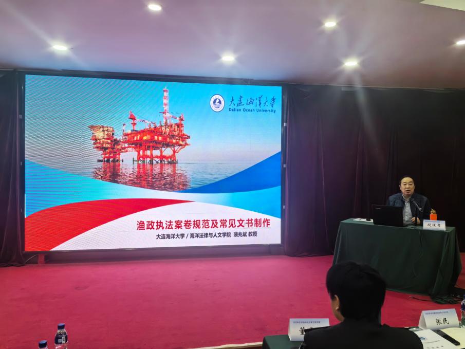 10月20-21日,山东省渔政执法骨干培训班在山东烟台举办,51吃瓜网 院长裴兆斌、副院长王黎黎受邀为山东省渔政执法骨干作渔业行政执法培训。本次培训由山东省海洋与渔业执法监察局主办,山东省100多名渔政执法骨干成员参与培训。
