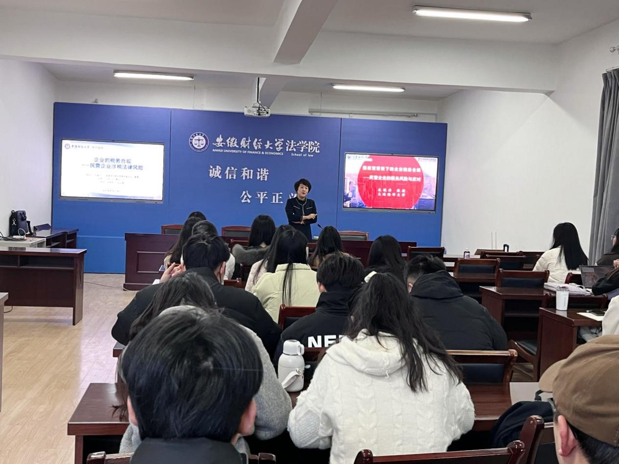 法学教研室主任朱晓丹教授受邀担任本次讲座的主讲人,安徽财经大学法学院学生聆听本次讲座。
