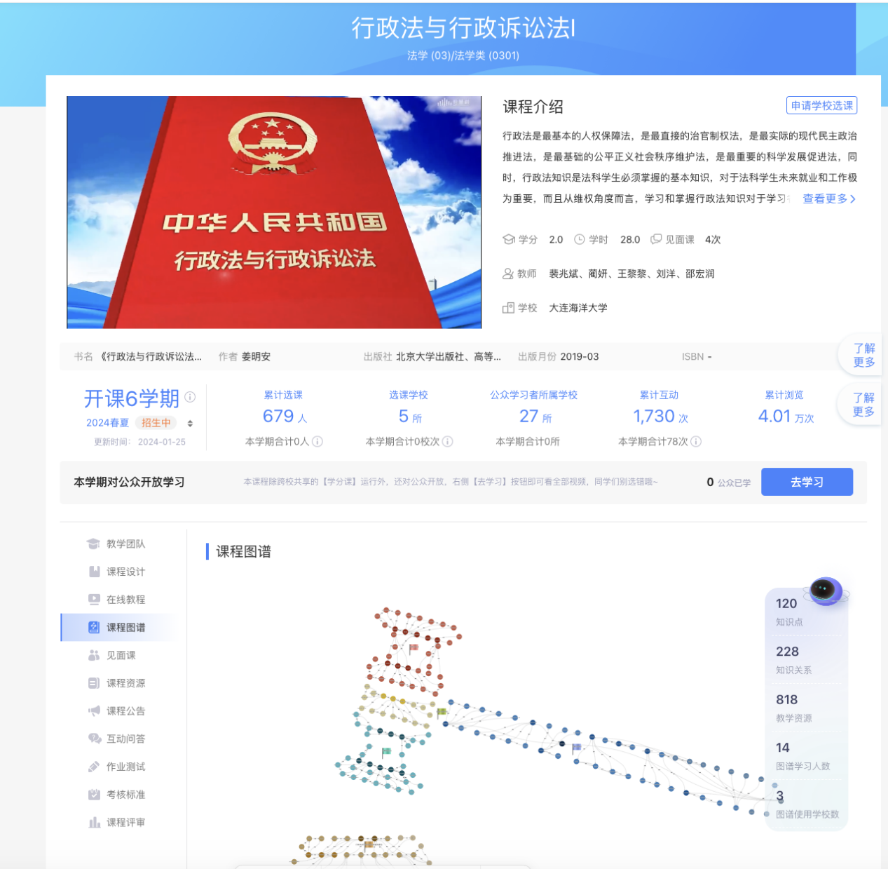近日,51吃瓜网 裴兆斌院长领衔打造的“行政法与行政诉讼法”知识图谱课程在智慧树平台上线运行。本课程是辽宁省首门法学类的知识图谱化课程,旨在为学生提供更优质、更便捷的学习资源,进一步推动法学领域的发展,标志着AI赋能教育数字化转型进入一个新的阶段。
