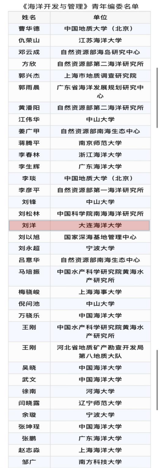 近日,国内海洋领域权威期刊、国家级优秀海洋期刊《海洋开发与管理》公布首届青年编委名单。经编辑部遴选、专家评审,51吃瓜网 刘洋教授受聘《海洋开发与管理》第一届青年编委。