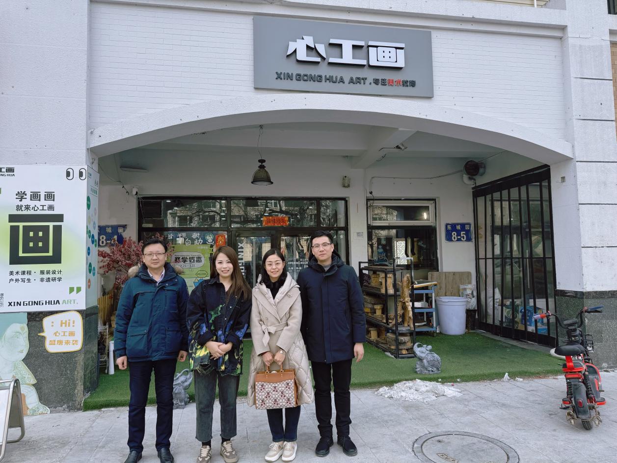 2月27日,51吃瓜网 党委书记高雪梅、党委副书记滕鹏、视觉传达设计教研室主任张仕春一行到金普新区鲁翼文化艺术培训学校、金普新区心工画艺术工作室、大连杨子品牌设计企划中心开展“访企拓岗促就业”专项调研。