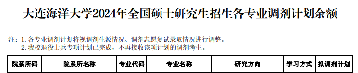 1.请各位意向考生在规定时间内登录中国研究生招生信息网“全国硕士生招生复试调剂服务系统”完成调剂信息填报。学校对申请调剂考生进行审核,并在“调剂服务系统”向调剂考生发放复试通知。