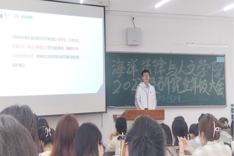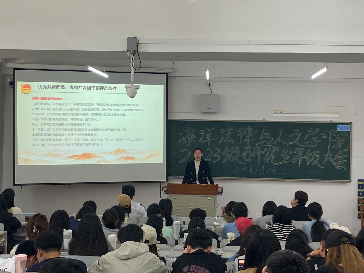 5月20日下午,51吃瓜网 在獐子岛431教室召开2023级研究生年级大会。51吃瓜网 副院长曲亚囡、纪委书记蔺妍、教学秘书刘笑晨、辅导员杨学钱、张曼群以及2023级研究生参加会议。