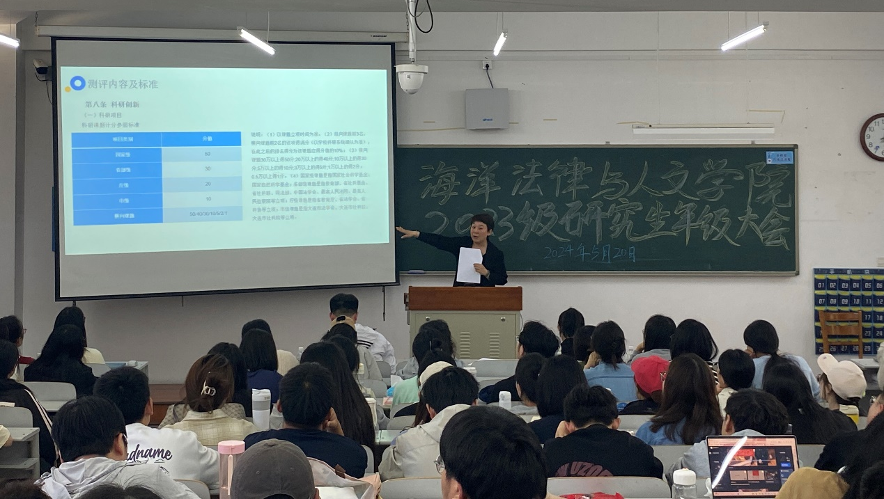 最后,纪委书记蔺妍详细介绍了学院研究生的综合素质测评办法,强调了综合素质测评在研究生培养中的重要性,鼓励同学们认真完成科研工作和学习任务,并积极参加各类竞赛和活动,做到全面发展。