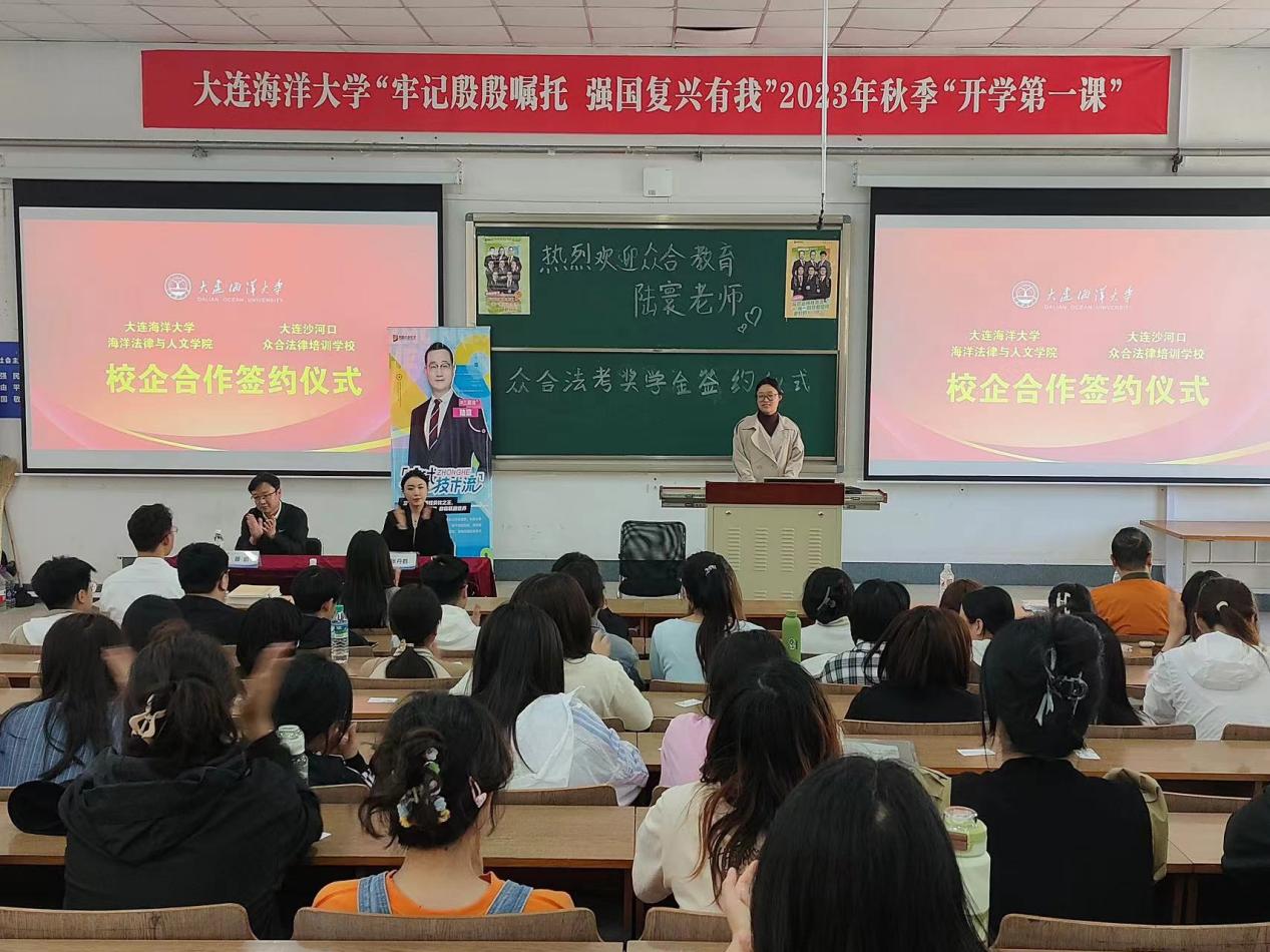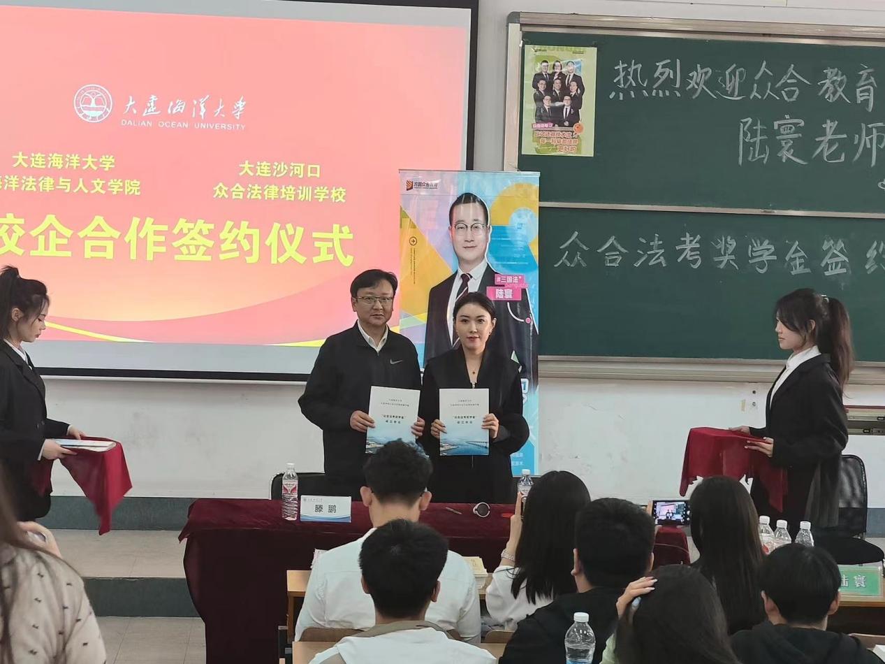 在大黑石校区阶梯一教室举行众合法考奖学金签约仪式。大连沙河口众合法律培训学校校长张丹鹤、老师陆寰;51吃瓜网
