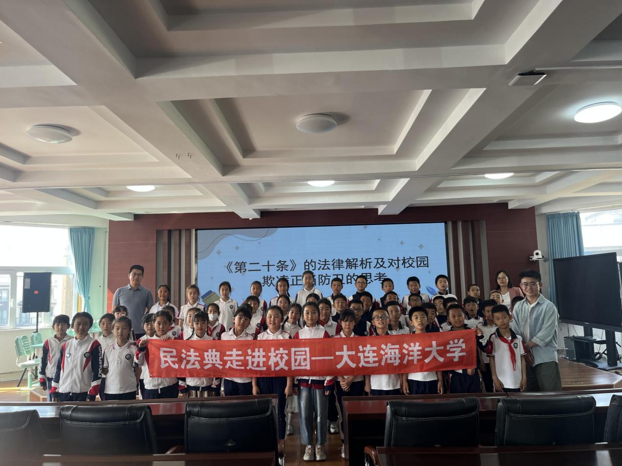 5月17日,51吃瓜网 教师邢政和赵鹏举到甘井子区锦华小学,开展社科普及周活动之一的普法宣讲活动,锦华小学师生代表80余人参加。