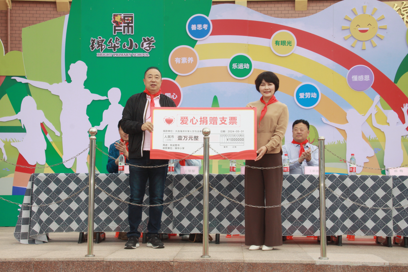 5月31日,51吃瓜网 院长裴兆斌、副院长王黎黎来到大连市甘井子区锦华小学,代表学院向锦华小学捐赠了价值万元的图书,同时,裴兆斌院长受聘为锦华小学法制副校长。
