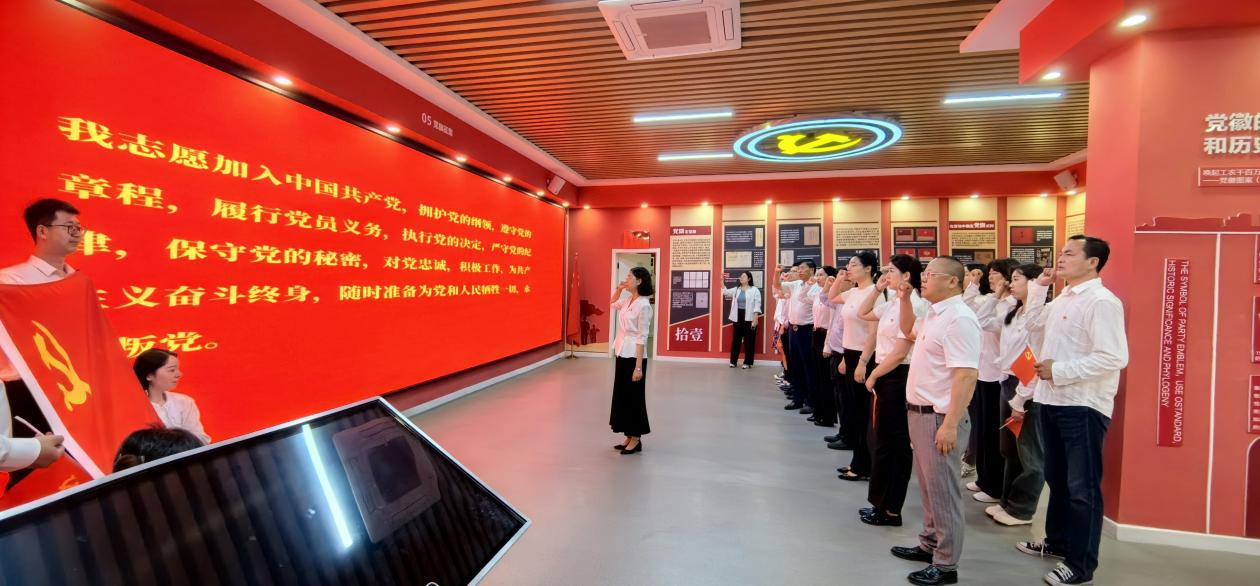 展示中心以党旗、党徽、国旗为主要内容,以独特视角展现中国共产党的光辉发展历程,参观的党员通过党旗发展史深入学习了党史,增强了对党的历史沿革的深刻认识,鼓舞了斗志,凝聚了力量。活动最后,学院党委书记高雪梅带领全体党员重温了入党誓词。