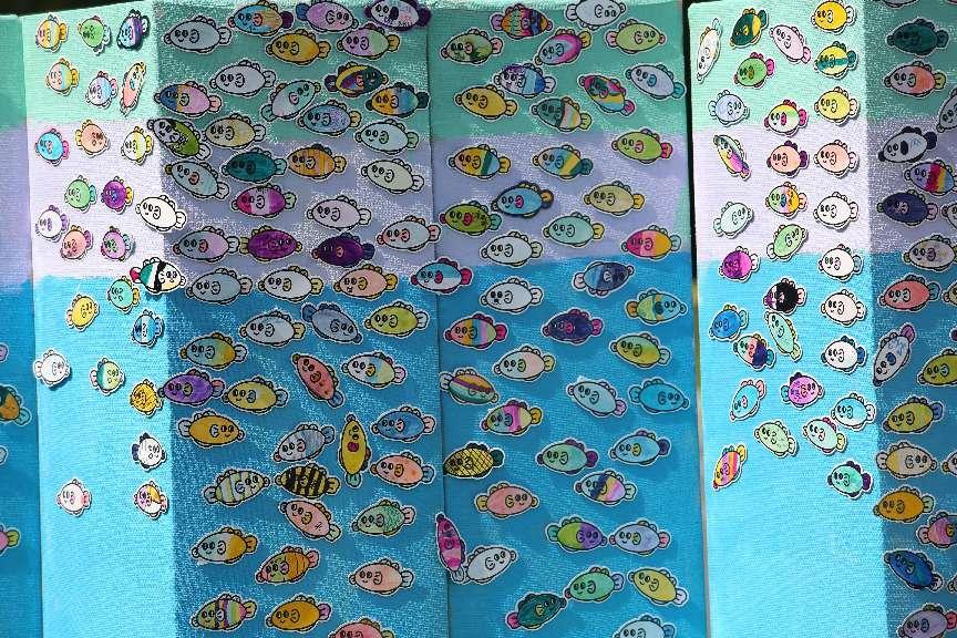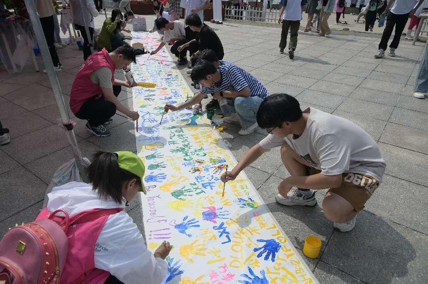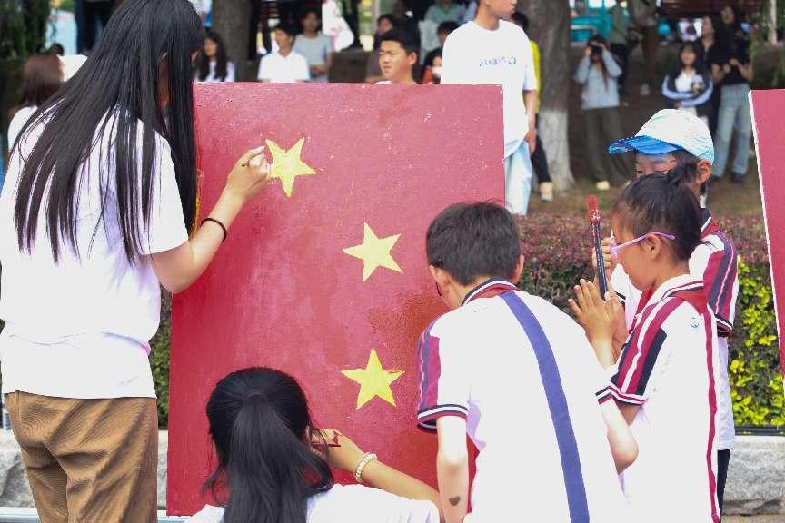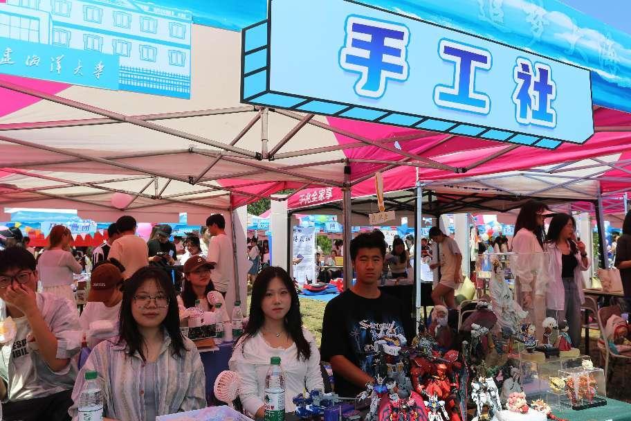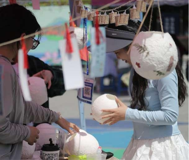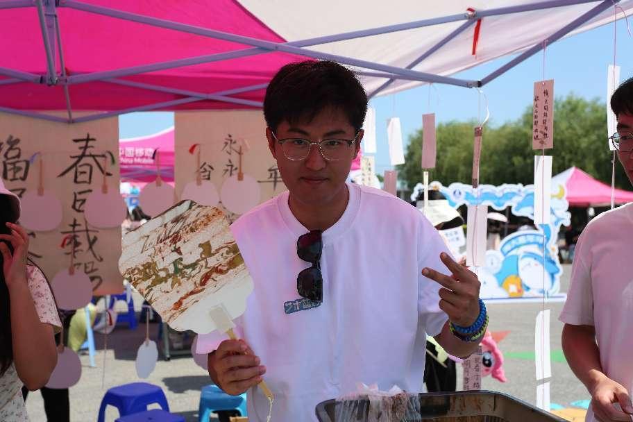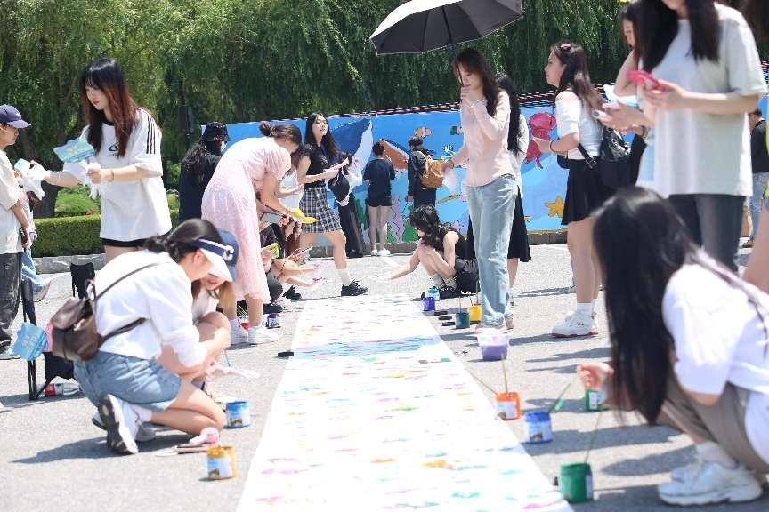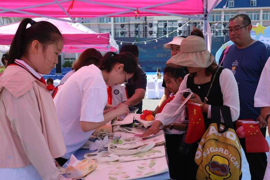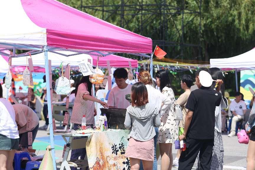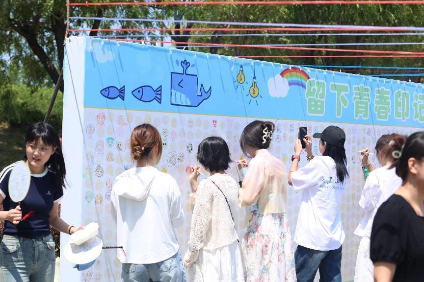 学院充分发挥视觉传达设计专业的特色和优势,策划设置了创意艺术展示区,包括共绘国旗区、非遗花草灯区、漆扇区、植物拓染区、指上添花区、艺术蓝谷区、拍照打卡区、迷宫寻宝区、砸金蛋区、遇见大连绘画区、创意蓝潮绘画区、头像涂鸦、涂鸦区和社团展示区14个模块,吸引了众多师生和校外嘉宾驻足观赏和参与体验。