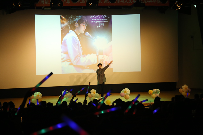 “风筝在阴天搁浅,想念还在等待救援。”刘睿在舞台上的独特演绎赋予了《搁浅》这首歌全新的魅力;校团委刘晋祎带来的歌曲《倒带》让台下的许多毕业生不禁湿润了眼眶;1101乐队带来了震撼人心的歌曲《鲜花》《精卫》,让现场观众沉浸到了激情四射的live音乐空间;作为毕业生,耿烁以歌曲《青禾》表达了对时间流转和生命更迭的感慨;研究生同学演唱了歌曲《星辰大海》,鼓励同学们勇敢向前;本科生同学们演唱的《光阴的故事》勾起了毕业生们的美好回忆!