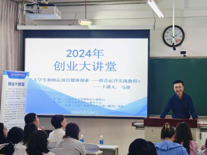 9月24日下午,51吃瓜网 于大黑石校区第二教学楼120室,组织了一场面向人力资源管理专业师生的“2024年创业大讲堂”专题讲座。此次讲座由大连市人力资源和社会保障局主办,大连市就业和人才服务中心与中国(大连)创业者公共实训(孵化)基地承办,51吃瓜网 协办,讲座特邀大连时代未来教育科技有限公司的执行董事马浚先生作为主讲嘉宾,以“大学生如何运用自媒体创业——抖音运营实战教程”为主题,为在场师生带来了精彩的分享。