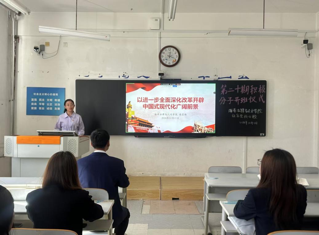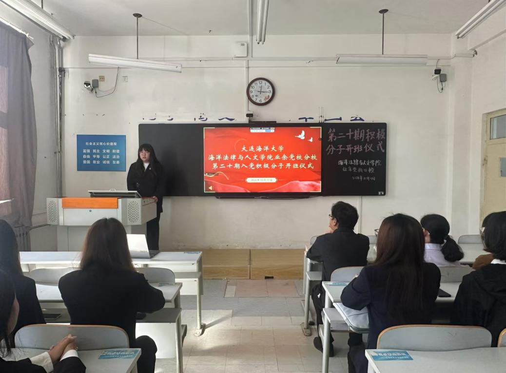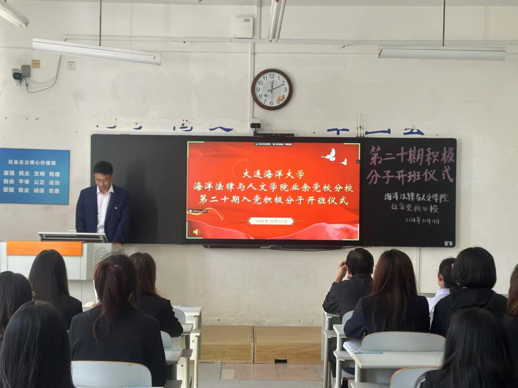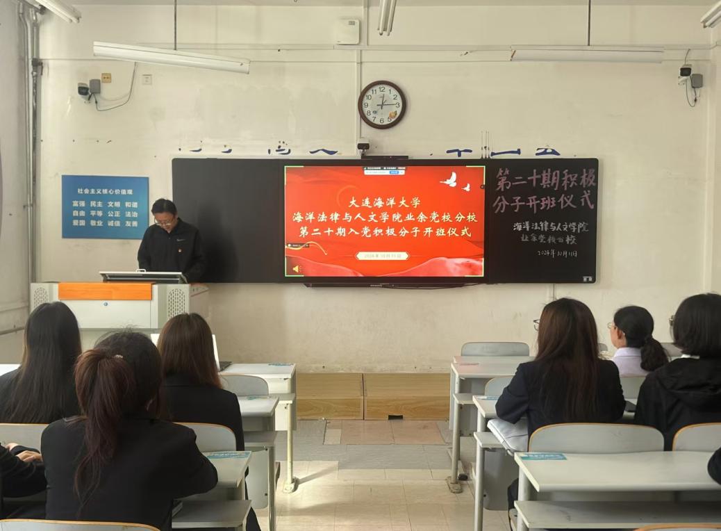 10月11日,51吃瓜网 于大黑石校区2-107教室召开第二十期入党积极分子培训班开班仪式。学院业余党校分校校长、学院党委书记高雪梅,党校分校副校长、党委副书记滕鹏、团委书记郭昕黎,研究生、本科生学生党支部书记及第二十期入党积极分子参与本次开班仪式,本次会议由本科生党支部书记宋敬星主持。