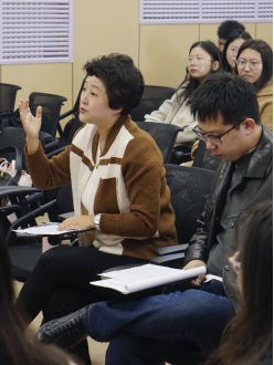 课堂上,研究生分为5个小组,围绕“刘玉诉王清返还赠与财产”一案的争议焦点分角色扮演当事人、代理人、证人和合议庭组成人员,完整逼真还原了民事案件庭审现场。