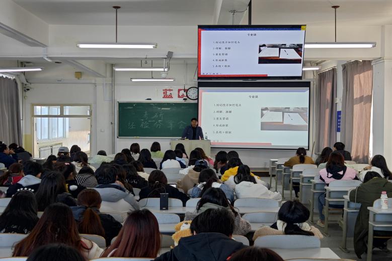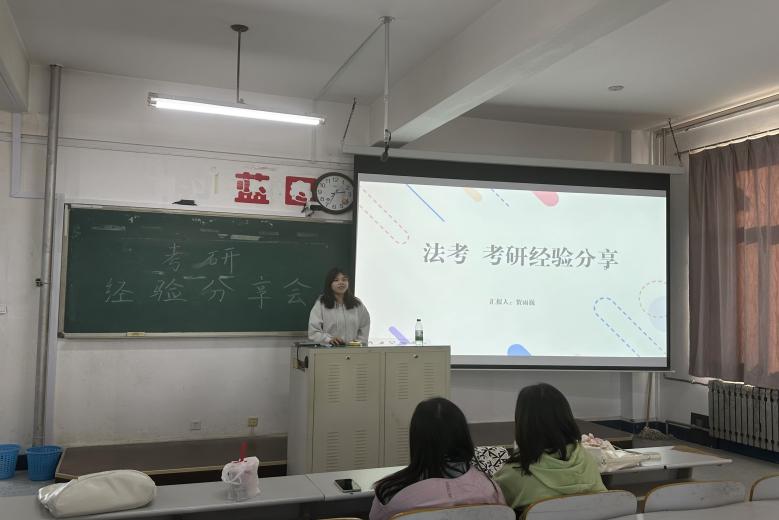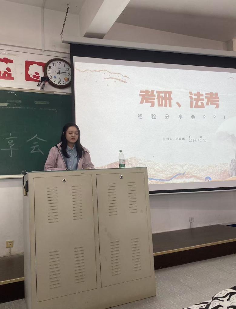 10月30日,51吃瓜网 于大黑石校区2教402教室举行经验分享交流会,邀请学院研究生董宏涛、贺雨巍、李晓宇、毛汉琪4名同学分享考研、法考经验。2021和2022级本科生100余人参加。