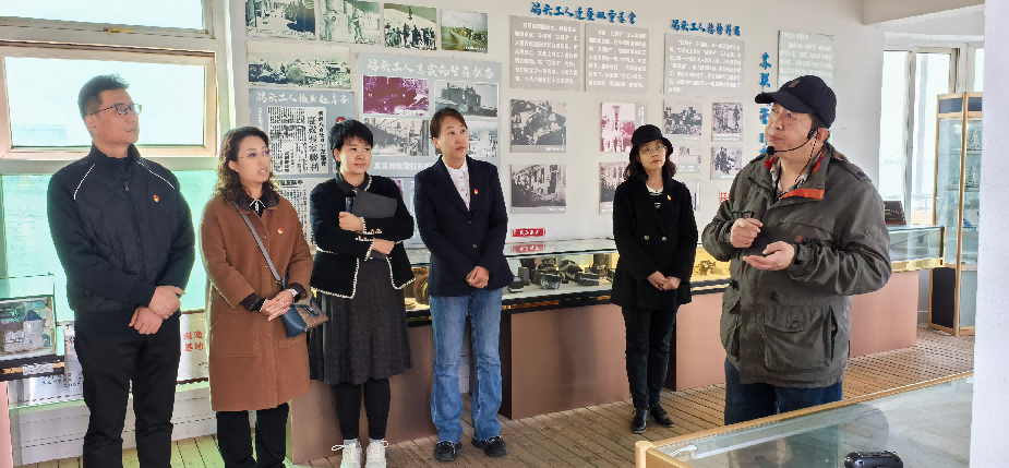 在老码头史迹馆,讲解员为大家讲述了老码头工人、“红房子”工人以及老码头地下党、“抗日防火团”饱受日本帝国主义压迫剥削摧残奴役而英勇反抗的英雄事迹。党员们深入了解了从1899年至今,大连港经历沙俄占领、日本占领、苏联代管到新中国当家作主四个时期的沧桑巨变。在老码头物件展示区,党员们还看到了许多拥有近百年历史的老物件,这些老物件见证了大连港的发展历程,也承载着老一辈码头人的辛勤付出和无私奉献。