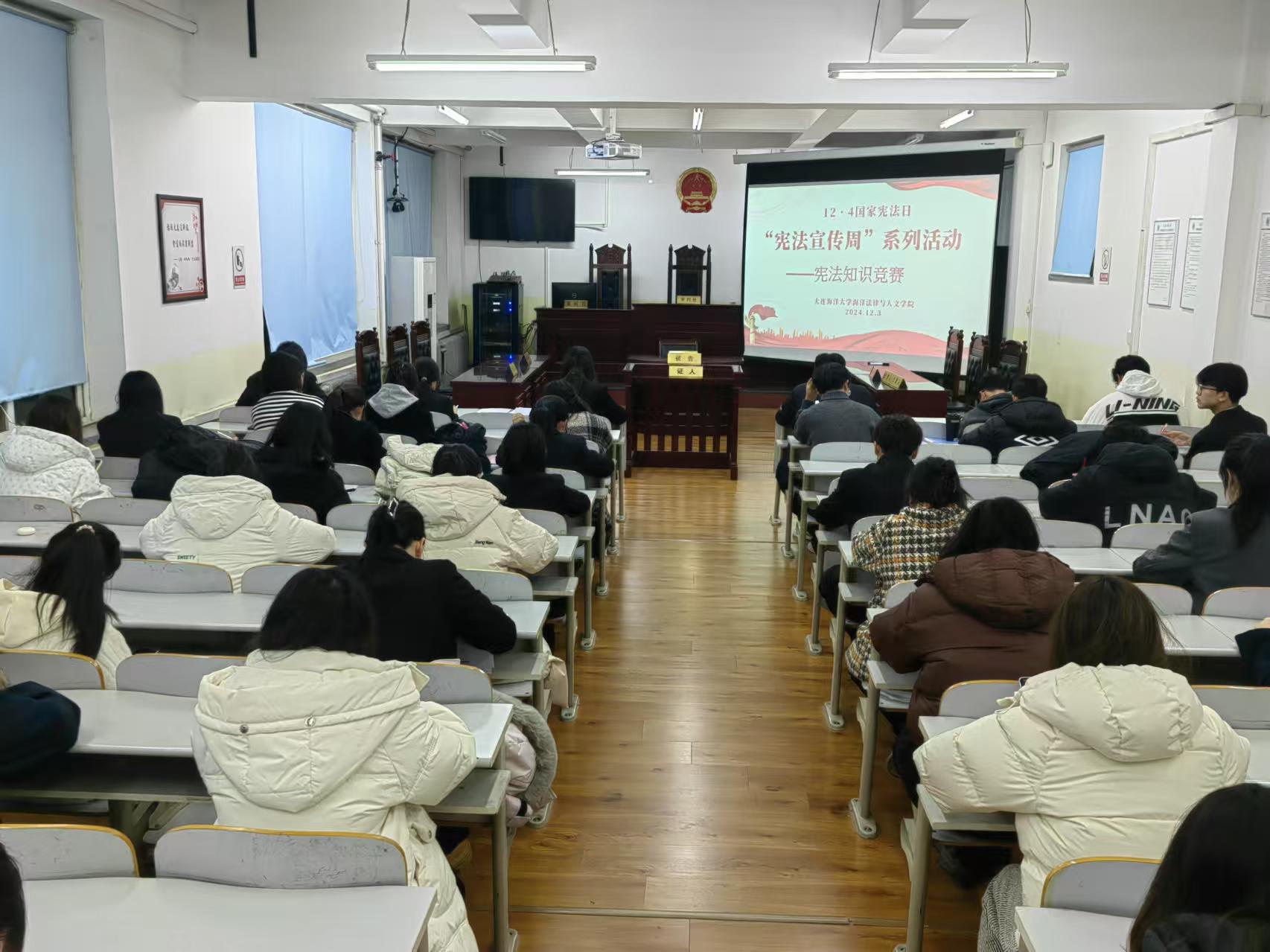 12月6日,51吃瓜网 在大黑石校区模拟法庭开展“宪法宣传周”系列活动之法律知识竞赛活动,100余名本科生法学学会社团成员参与。