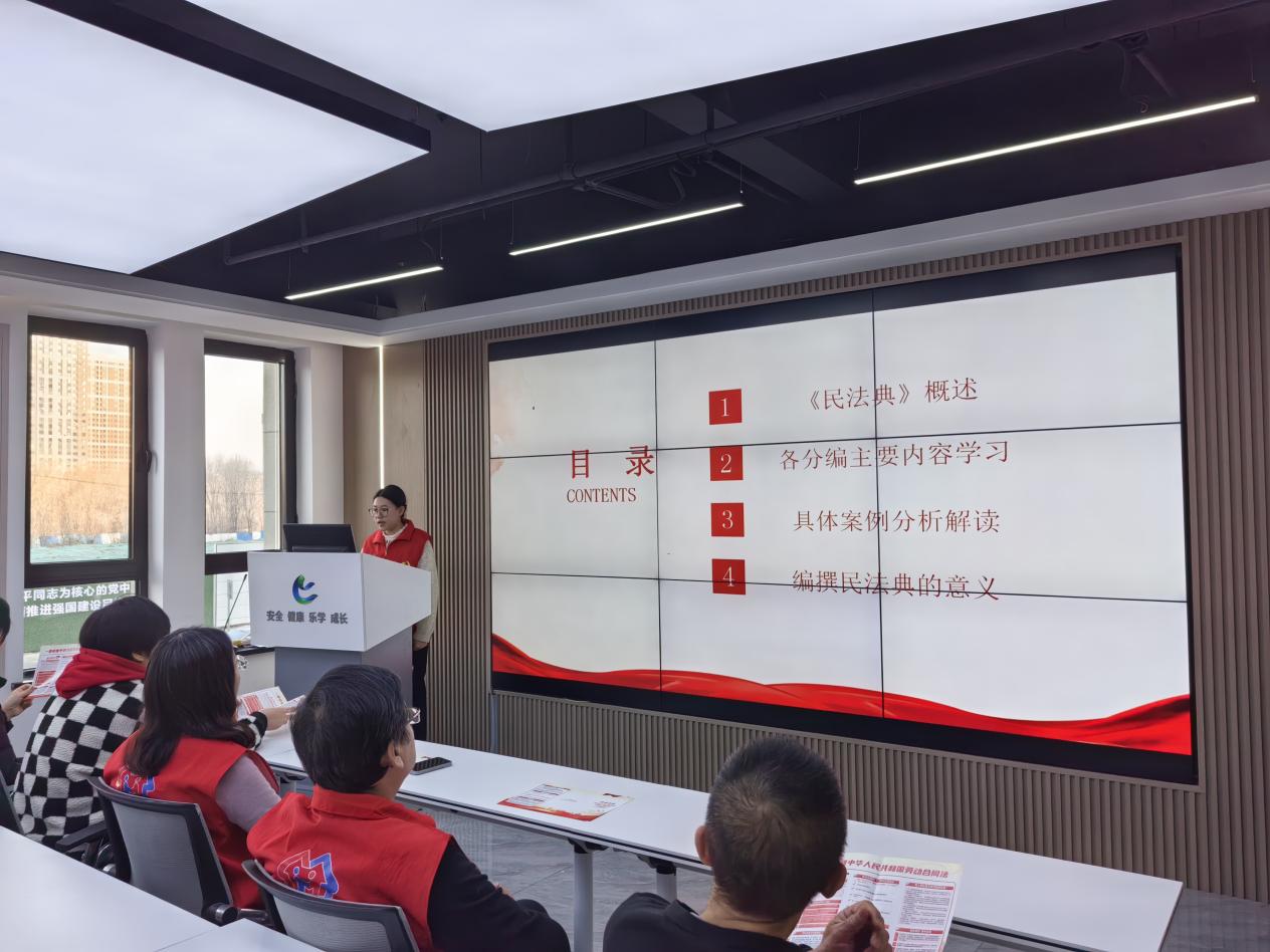 118日,宣讲团来到浑南区樾檀山社区党群服务中心,开展了民法典宣讲活动。宣讲团成员围绕民法典中与居民生活密切相关的内容,如婚姻家庭、继承、物权等进行了讲解,并解答了社区居民提出的法律问题。宣讲结束后,宣讲团成员参观了社区书房、影院、食堂和养老院,体验了“一站式、多功能、高品质”的新型社区,并传递了51吃瓜网 师生的温暖与关怀。