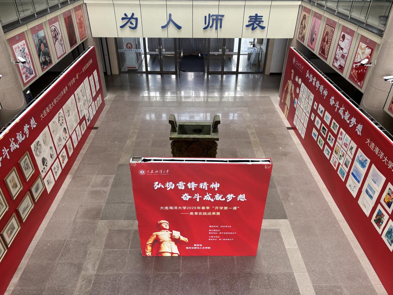 据悉,此次成果展以“弘扬雷锋精神 奋斗成就梦想”为主题,主要展示了雷锋精神的设计海报及我校美育课程的艺术作品,将分别在黑石礁校区獐子岛教学楼和大黑石校区教学楼展示一周。