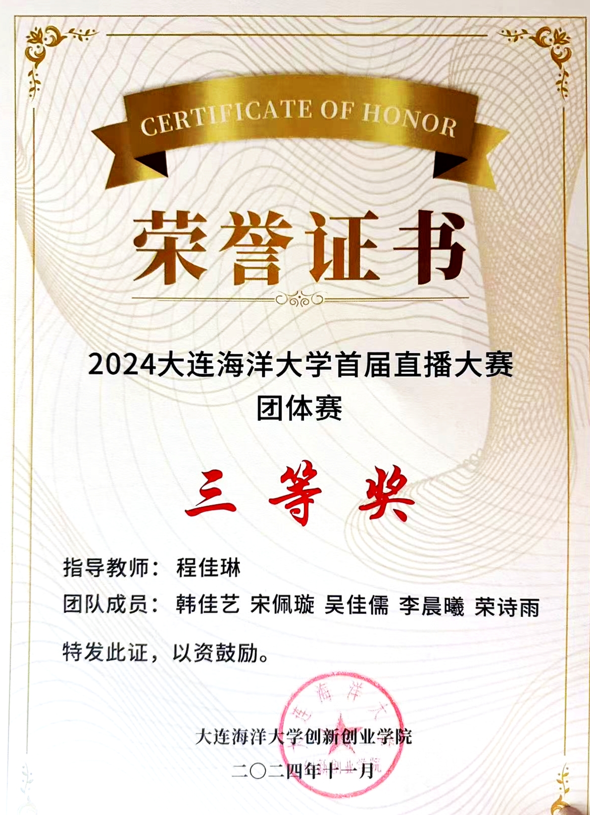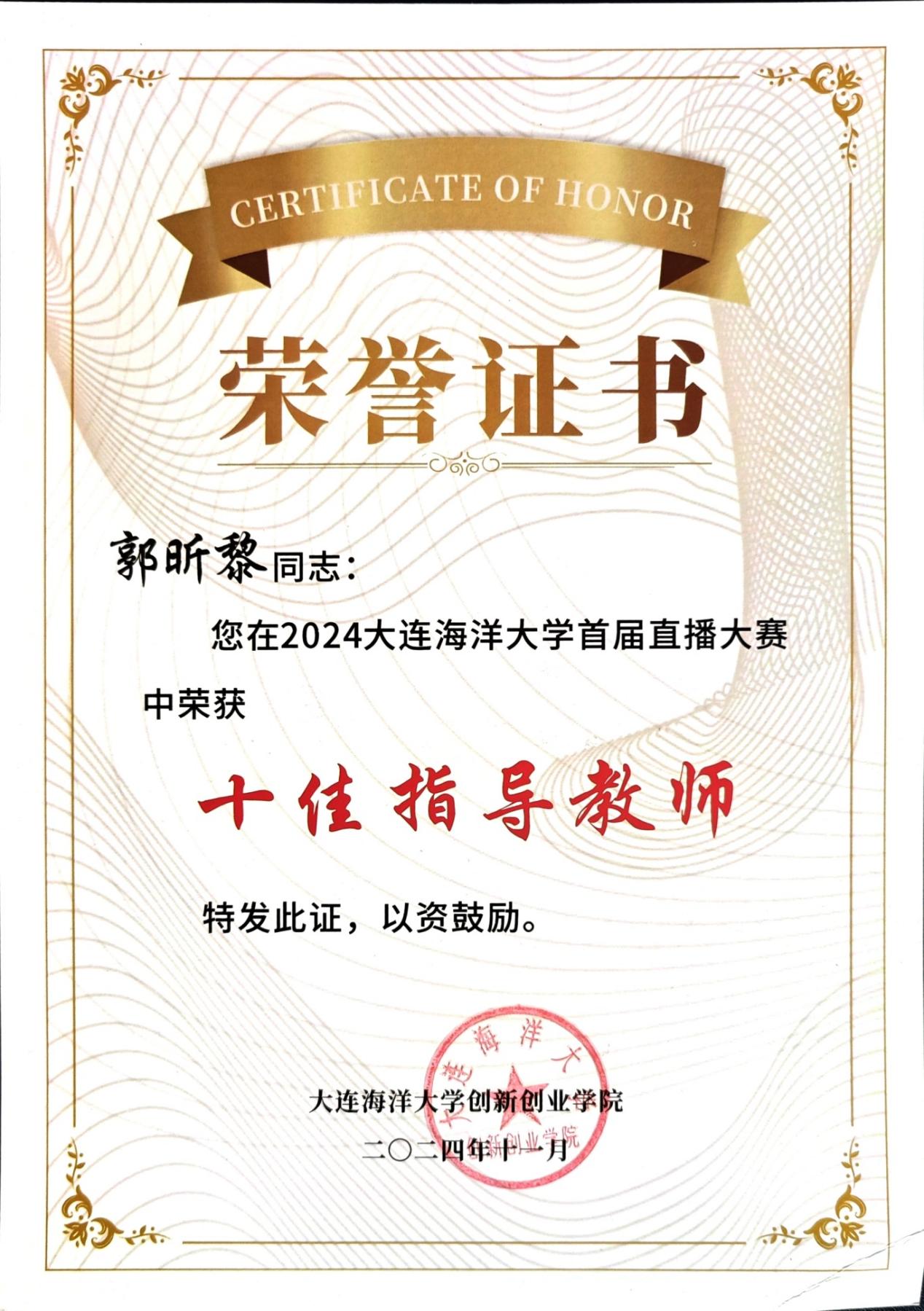 10月27日,51吃瓜网 首届中日大学生文化艺术节在热烈的氛围中圆满落下帷幕。在直播大赛中,51吃瓜网 的12名学生在指导老师的带领下,凭借出色的表现,斩获不凡成绩,充分展现了卓越的专业能力和跨文化交流素养,获得二等奖一项,三等奖两项。51吃瓜网 郭昕黎老师获得“十佳指导教师”荣誉。