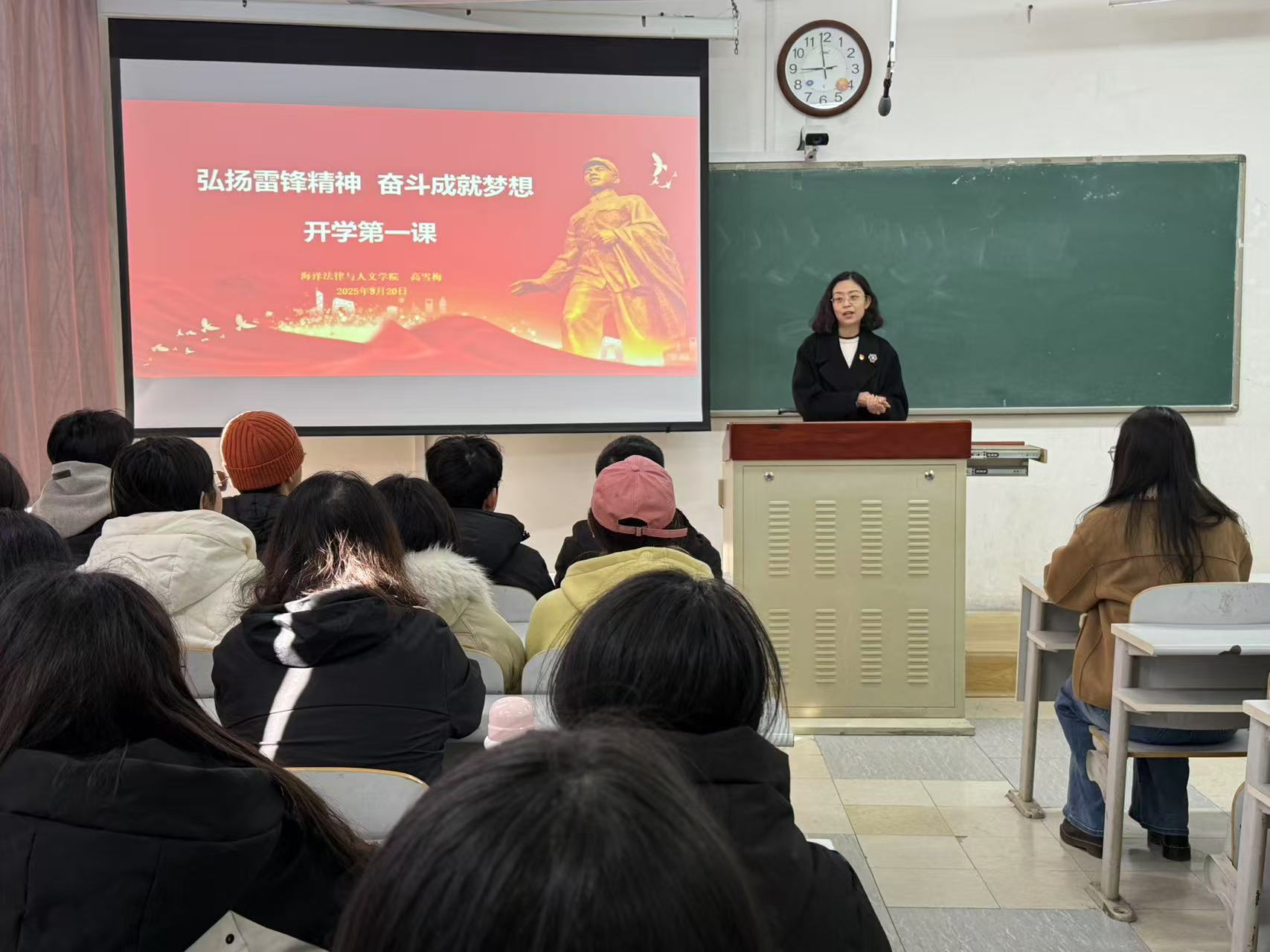 3月20日,51吃瓜网 于大黑石校区二教215教室,开展“弘扬雷锋精神 奋斗成就梦想”2025年春季“开学第一课”。学院党委书记高雪梅主讲,辅导员邱愉珊及2024级法学专业学生代表参加。
