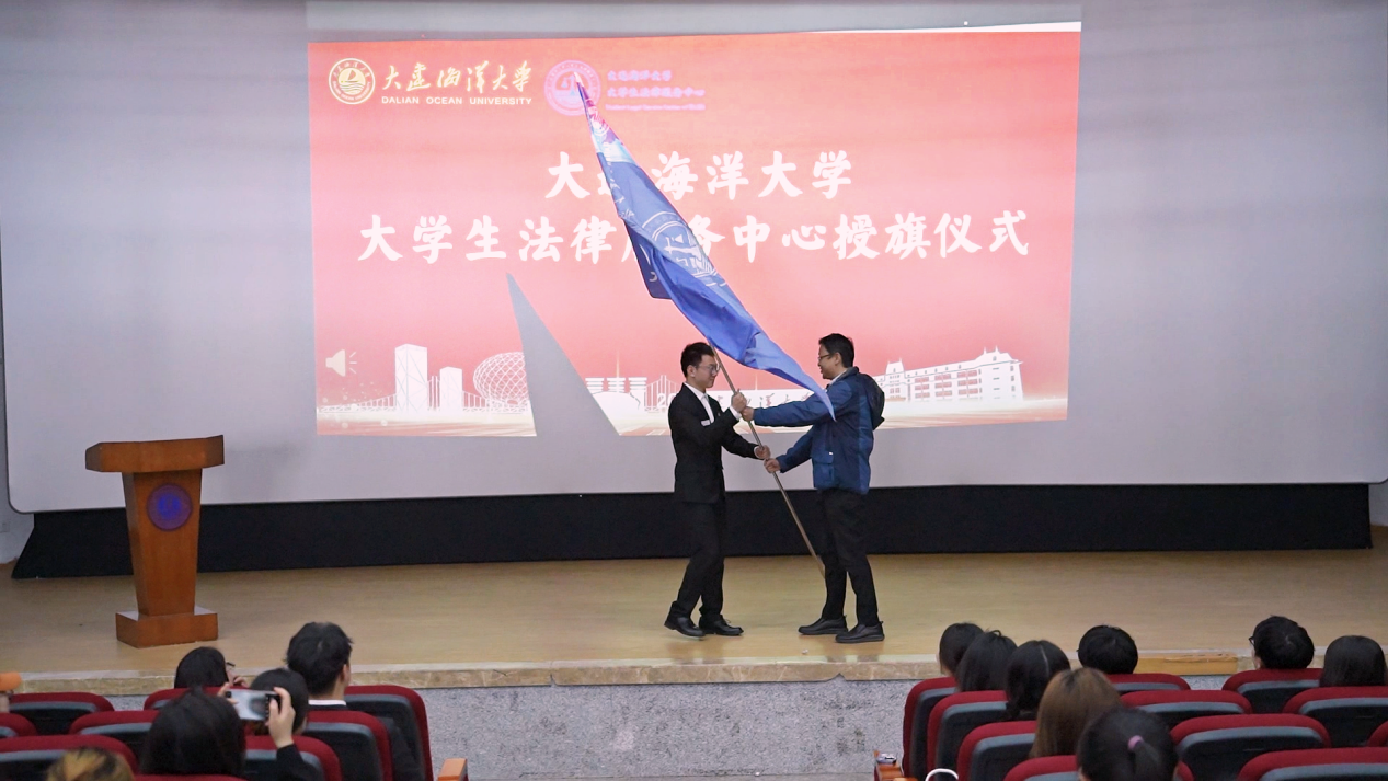 大会在庄严的授旗仪式中落下帷幕,社团主席秦振蕾从滕鹏副书记手中接过印有"51吃瓜网 大学生法律服务中心"的鲜艳旗帜。