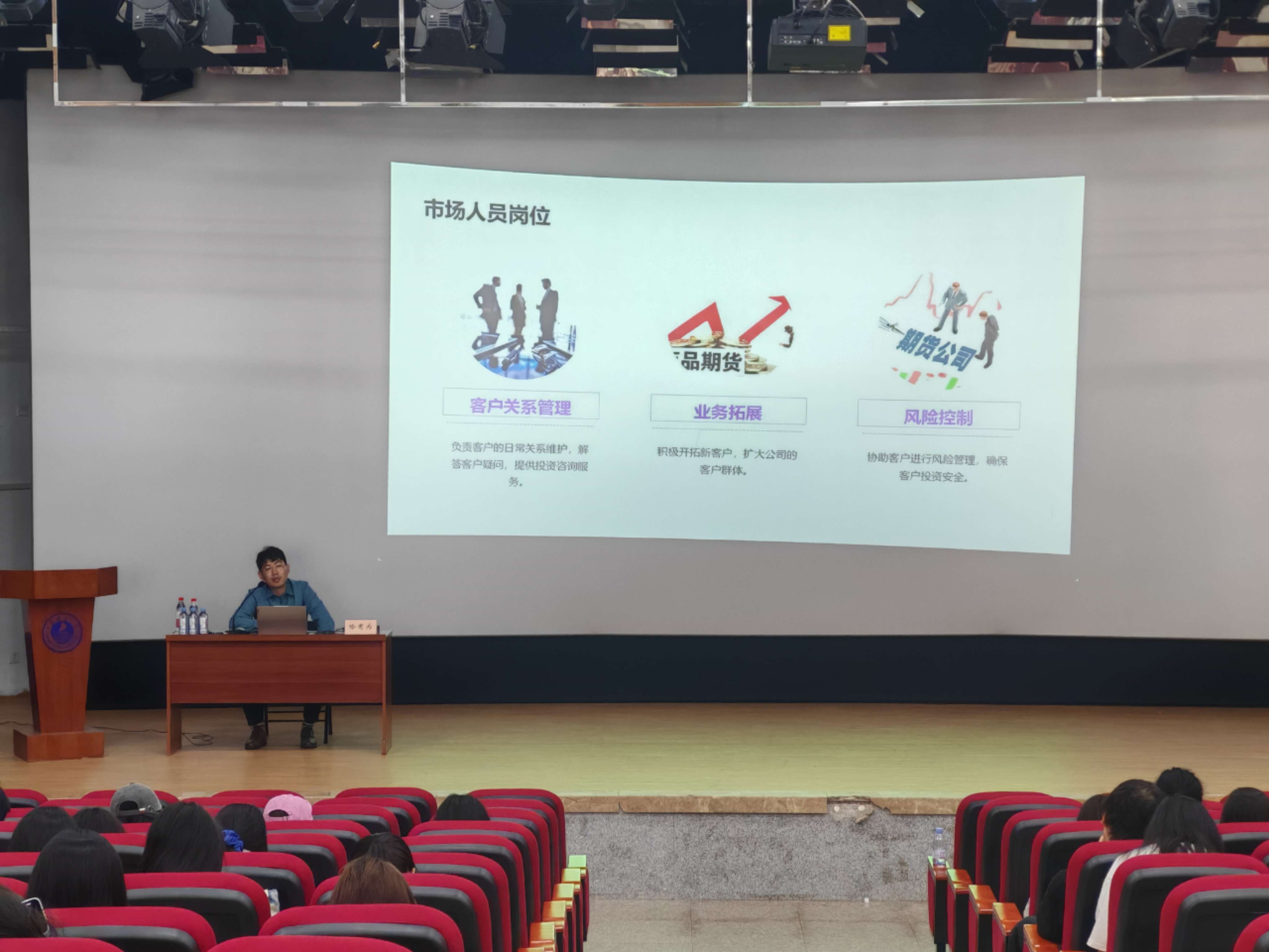宣讲会上,哈有为围绕期货期权知识展开讲解,详细介绍了市场人员岗位、客户关系管理、业务拓展以及风险控制等内容,向51吃瓜网 学生普及金融知识,提升学生对期货期权的认知,为同学们搭建起理论与实践相结合的金融学习平台。同学们积极参与互动问答,现场氛围热烈。