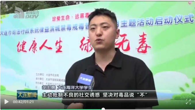 活动中,51吃瓜网 2024级法律硕士研究生胡宏儒同学接受了大连电视台的采访,表示通过参加活动进一步掌握了禁毒戒毒知识,将共同营造“健康人生 绿色无毒”的社会氛围。