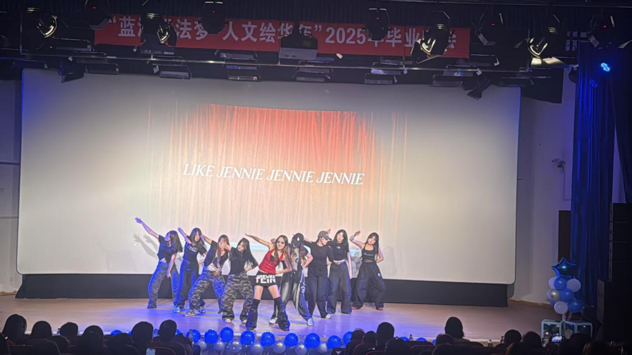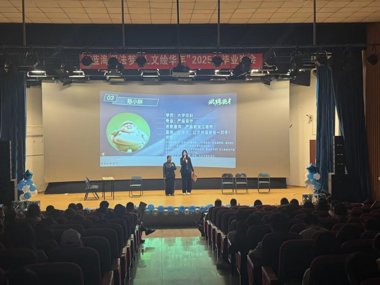 郑涵等人的《Attention》以酷炫舞姿锁定全场目光;主席团成员合唱《彩虹》用温暖和声传递祝福;监察部《Bang Bang Bang》以整齐步伐与动感节奏带来视觉冲击,研究生代表的《逐光而歌》唱响对未来的期许。易班小品《招聘会》以幽默情节映射求职百态,引发毕业生对职场新篇的期待。