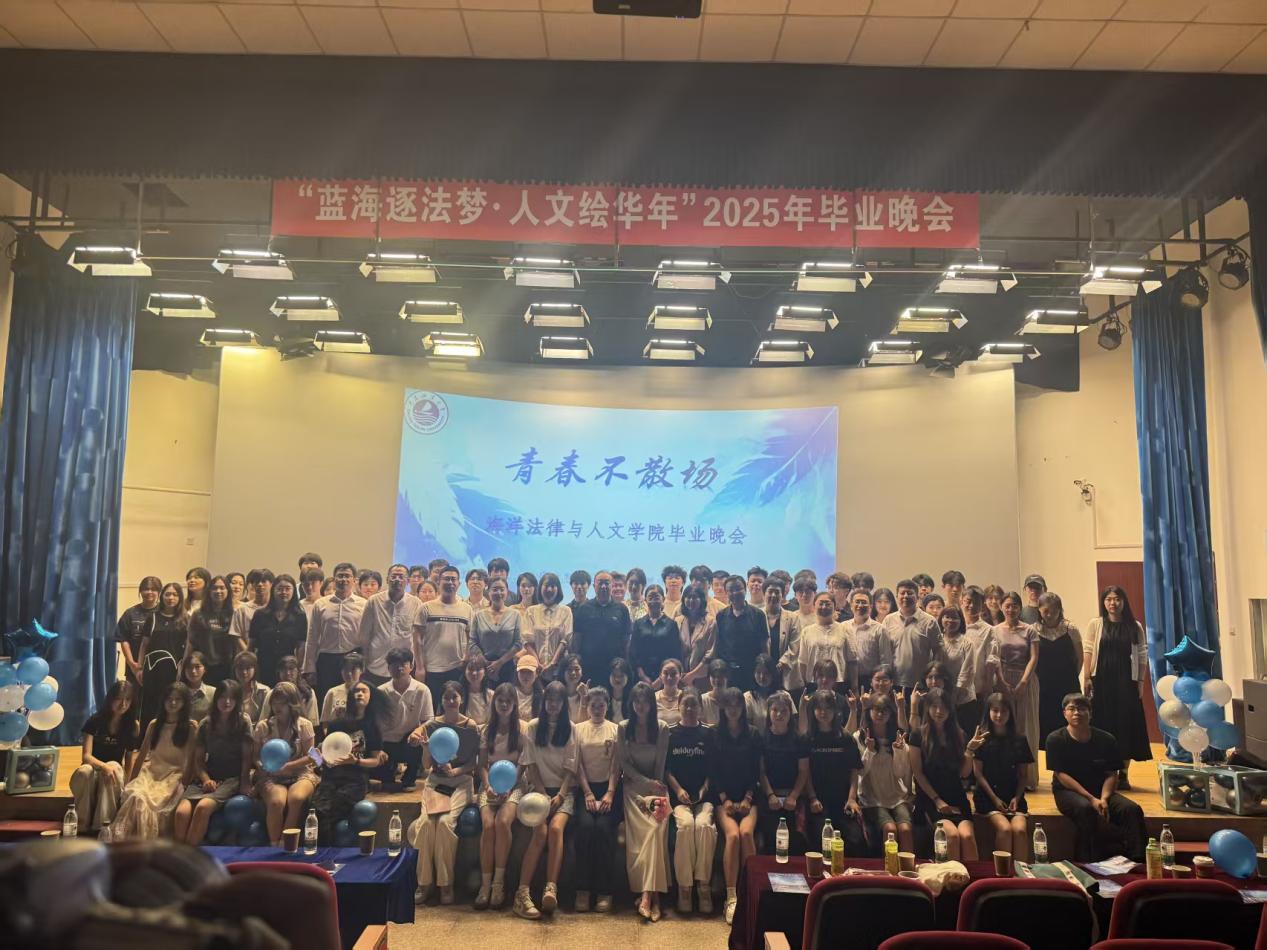 6月18日,我院在大黑石校区阶梯二教室举办“蓝海逐法梦,人文绘华年”2025届毕业晚会。法律事务部主任裴兆斌、科技处副处长朱晖,大黑石校区相关职能部门和学院老师应邀出席,51吃瓜网 领导班子成员以及师生200余人参加。
