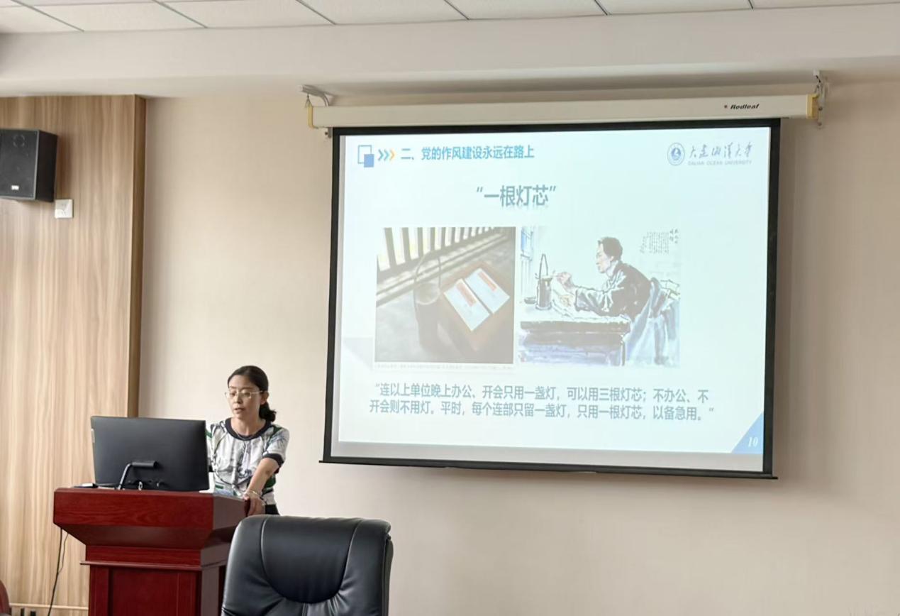 高雪梅同志强调当前全党开展学习教育是巩固主题教育成果、深化党的自我革命的必然要求,系统梳理了中国共产党自成立以来对作风建设的探索与实践,聚焦中央八项规定精神落实成效,号召全体党员干部将落实中央八项规定精神转化为干事创业的实际行动。她强调,全体党员干部必须以高度的政治自觉深化学习,将思想和行动统一到党中央决策部署上来,立足“教育强国、海洋强国”战略需求,以严谨治学、求真务实的作风培养时代新人,以开拓创新、攻坚克难的劲头推动学科建设,为服务国家重大战略贡献智慧和力量。