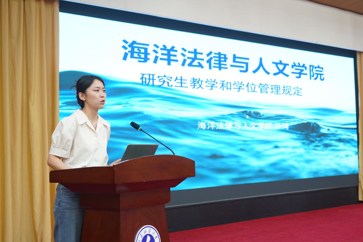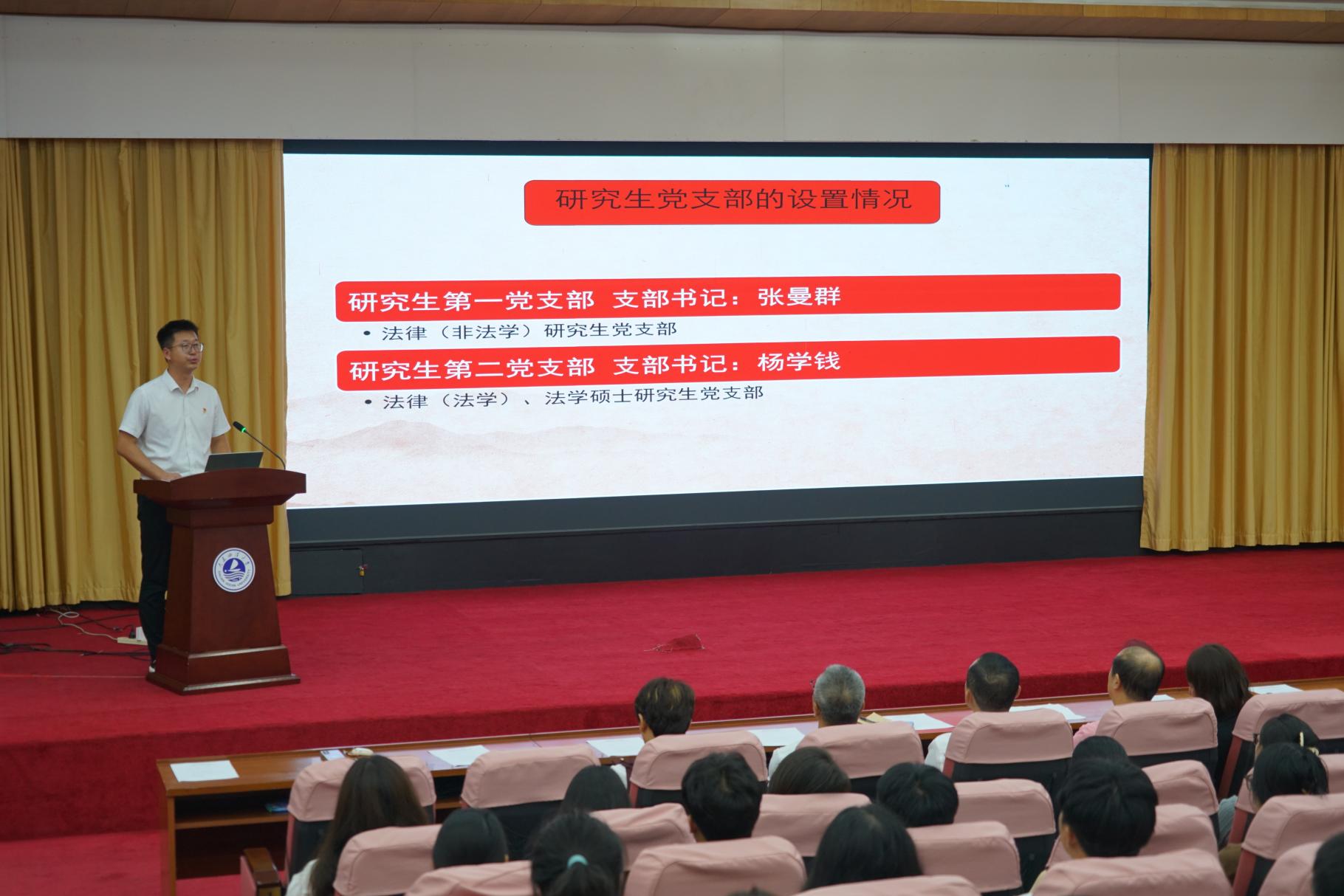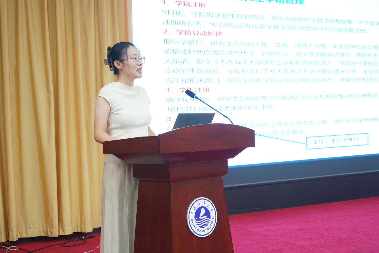 教学秘书孙琦研究生辅导员杨学钱、张曼群分别介绍了研究生教学及学位管理制度、日常管理规定以及党员发展条件等。