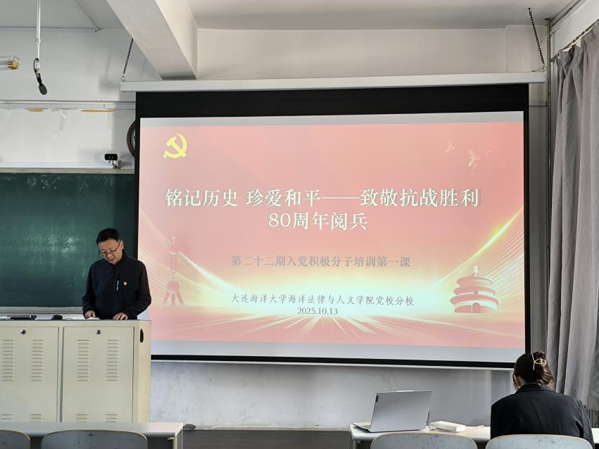 10月13日,我院于大黑石校区2教202教室召开第二十二期入党积极分子培训班开班仪式。我院党校分校副校长、党委副书记、本科生党支部书记滕鹏,学院组织员杨毅,本科生党支部组织委员邱愉珊,2025级辅导员张恒毅、研究生第一党支部书记张曼群、研究生第二党支部书记杨学钱及第二十二期全体入党积极分子参加本次开班仪式,本次会议由邱愉珊主持。
