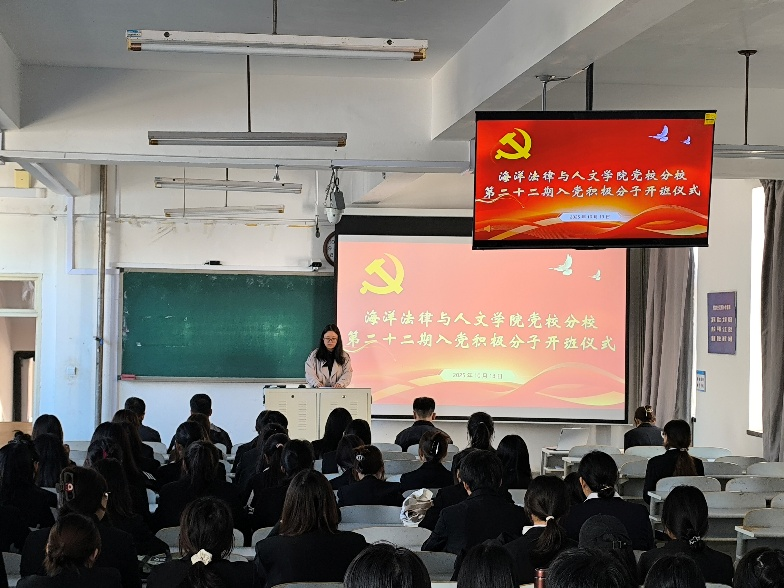 开班仪式在庄严的国歌中拉开帷幕。仪式上,滕鹏宣读了积极分子的培训纪律要求,杨毅公布了本期培训安排,使同学们对培训方案有了清晰的认知与合理的规划。