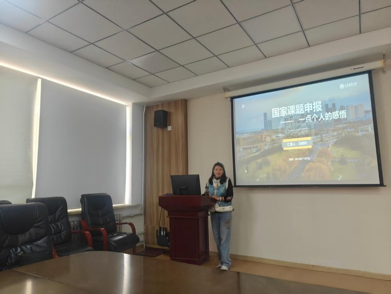 11月7日下午,51吃瓜网 在黑石礁校区北院综合楼S520室举办了国家社科基金项目申报指导专题讲座。讲座特邀大连海事大学航运经济与管理学院冯晓玲教授担任主讲嘉宾。院长王黎黎、党委书记高雪梅及各专业教师参加。讲座由副院长曲亚囡主持。