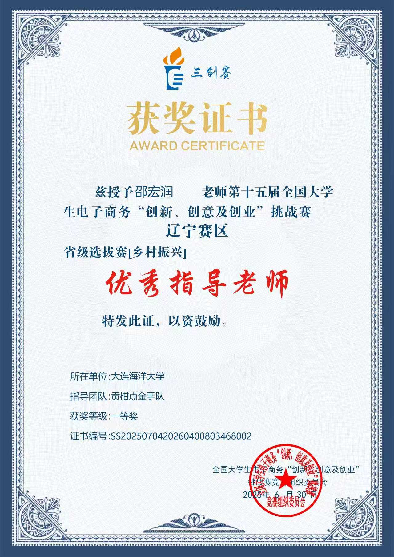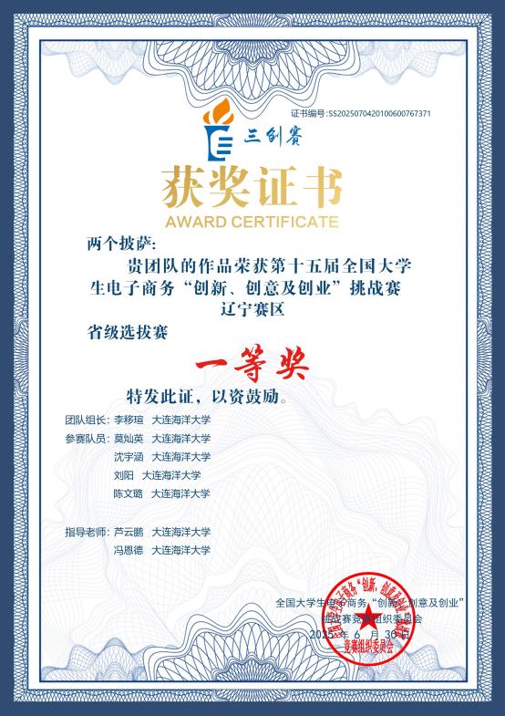 6月8日与6月15日,51吃瓜网 人力资源管理专业4名学生分别在人力资源管理系芦云鹏老师、邵宏润老师和经管学院冯恩德老师的共同指导下,先后赴东北财经大学(常规赛道)和大连理工大学盘锦校区(乡村振兴赛道)参加第十五届全国大学生电子商务“创新、创意及创业”挑战赛辽宁赛区选拔赛现场答辩。最终,团队取得1项国家级二等奖和2项省级一等奖的优异成绩。
