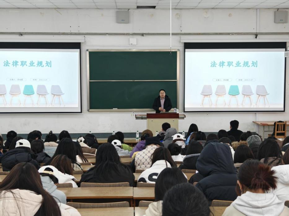 李连震以自身的职业发展经历为切入点,用生动鲜活的案例和详实的数据,为同学们系统梳理了当前法学专业的发展趋势。针对就业市场现状,李连震从公检法系统、律师行业、企业法务等多个维度,深入分析了不同职业方向的发展前景、准入条件及能力需求,让同学们对法学就业市场有了更为全面清晰的认知。