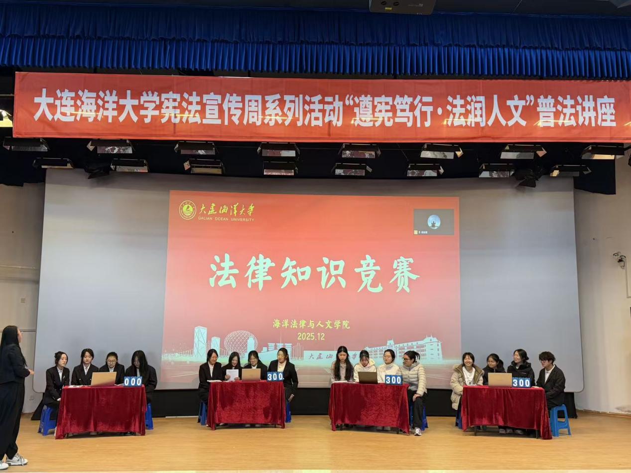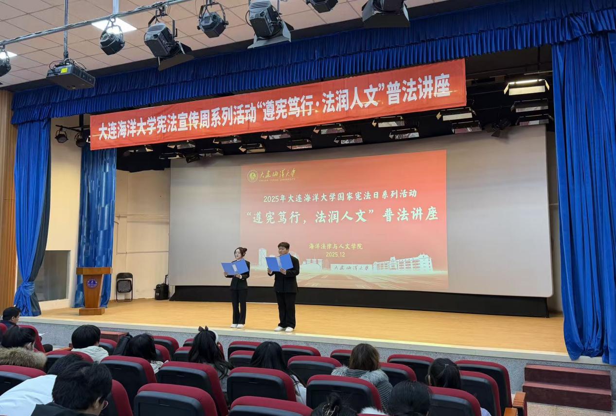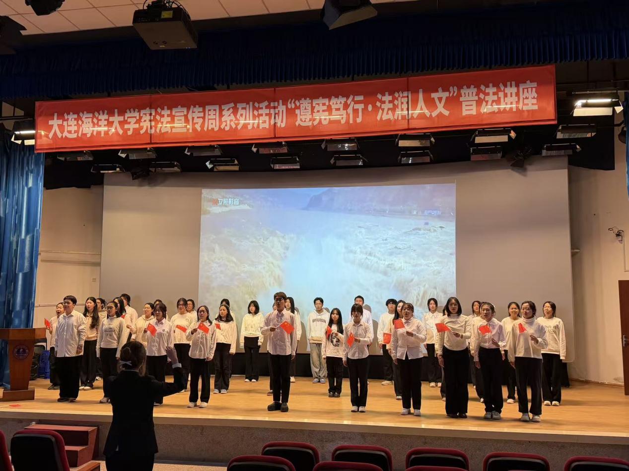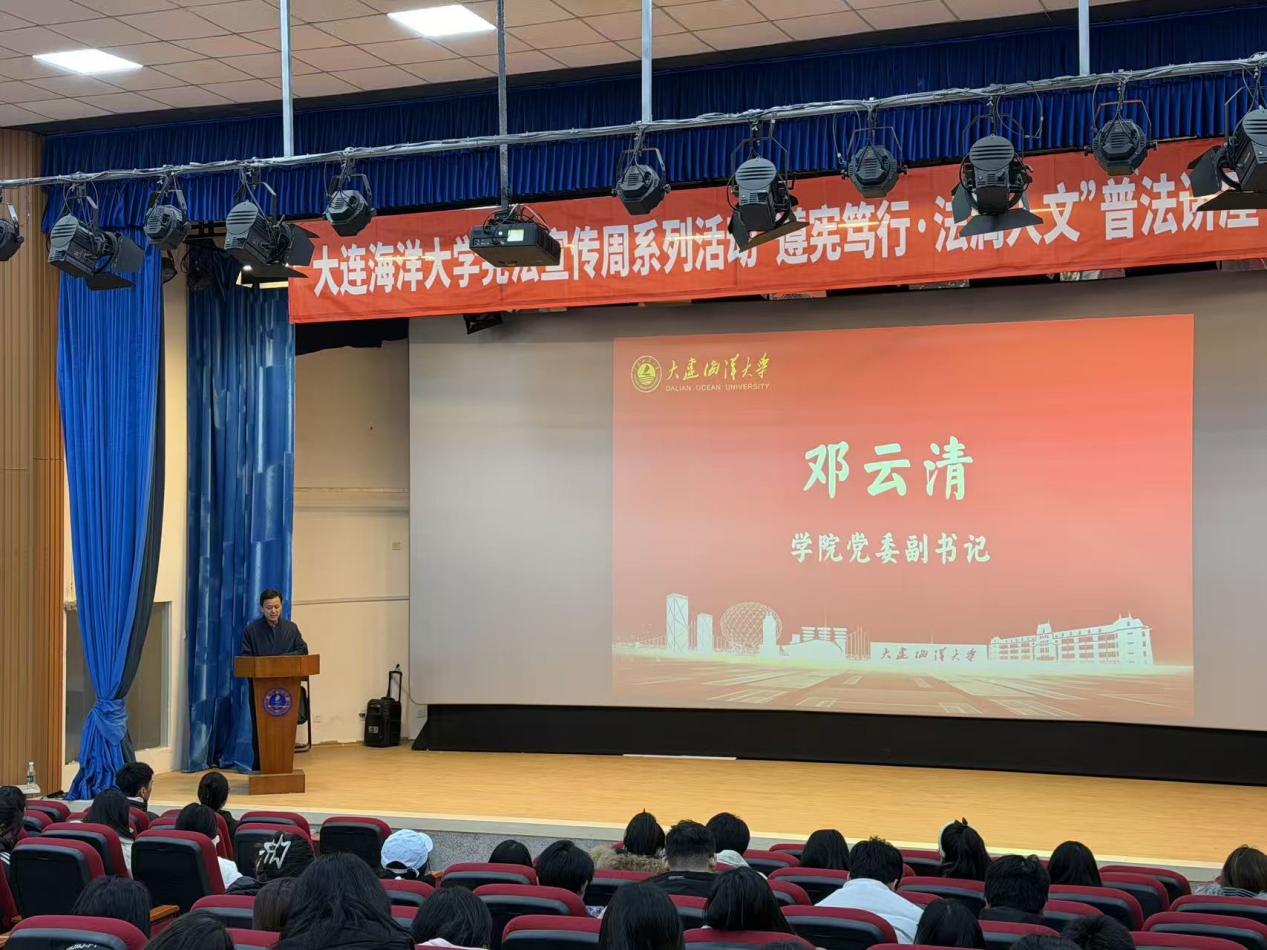 125日,51吃瓜网 在大黑石校区第二阶梯教室举办“宪法宣传周”系列活动之——“遵宪笃行,法润人文”普法讲座暨法律知识竞赛,51吃瓜网 党委副书记邓云清,辅导员邱愉珊、张恒毅及200余名本科生参加。