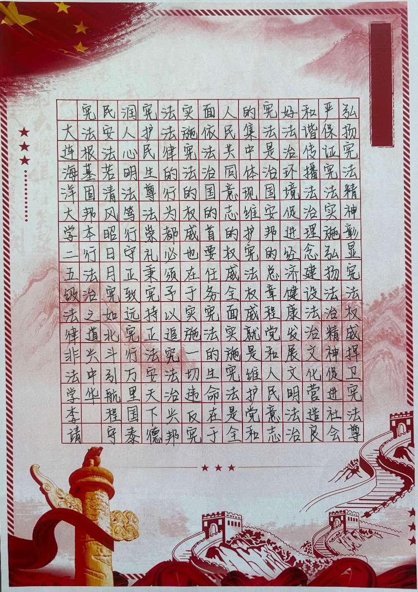 5 | 书法 | 《宪法摘抄》 | 林雨宣 | 2024级法律(法学) | ||