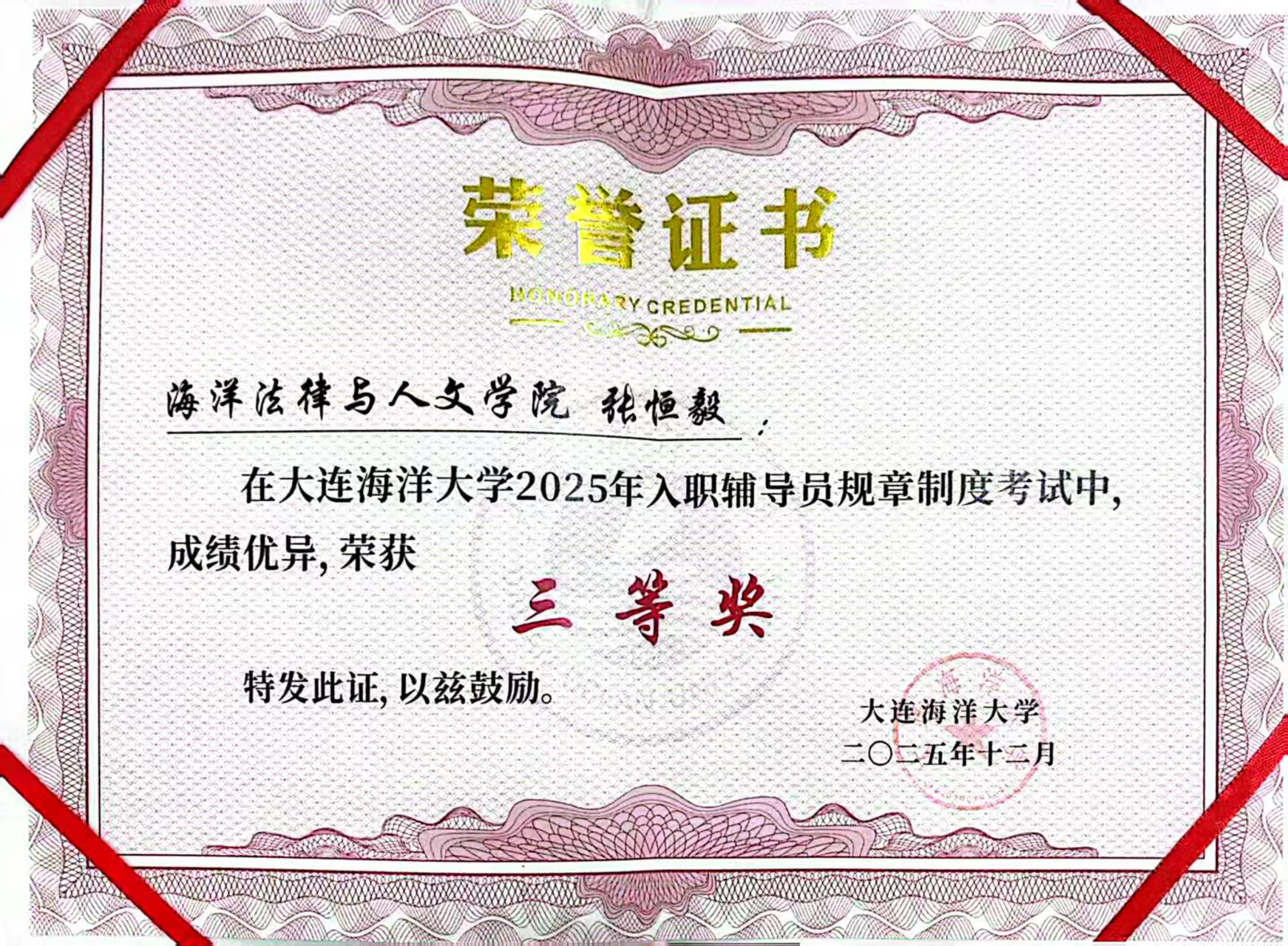 郭昕黎、张曼群等辅导员荣获校优秀辅导员、校优秀学生思想政治教育工作者等荣誉称号;邵宏润、李伟侠、张仕春获评“校优秀班导师”。
